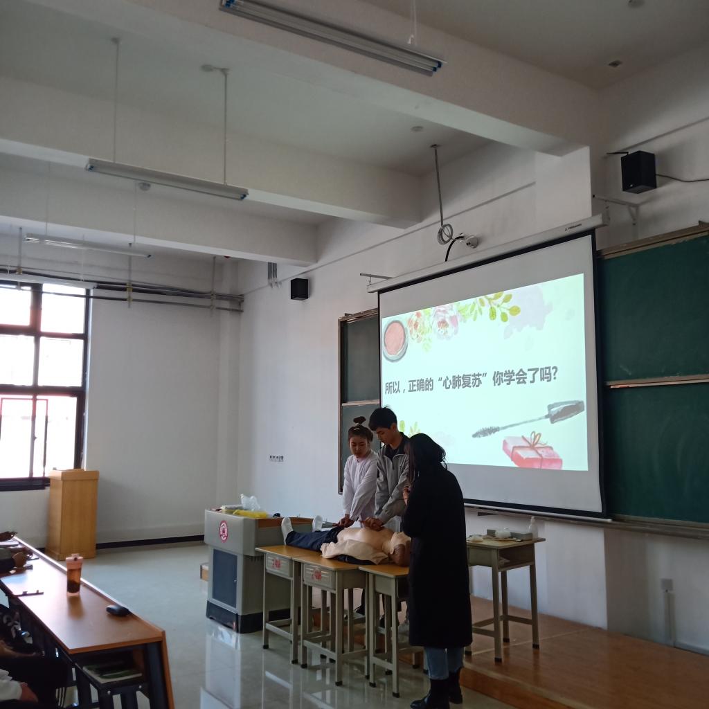 活动内容由护理学院的几位学生代表向同学们讲述了实际救护技巧对生活中遇到突发状况急救、徒手心肺复苏、人工呼吸、溺水紧急救护等内容作了详细讲解,为了使同学更深入的了解各项救护技巧,掌握心肺复苏要领,护理学院学生代表和同学们在现场展开了深入互动。对心肺复苏进行了实操演练、手把手向同学们传授了急救手法和注意事项。