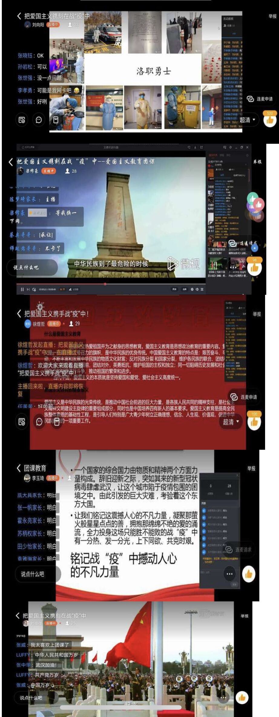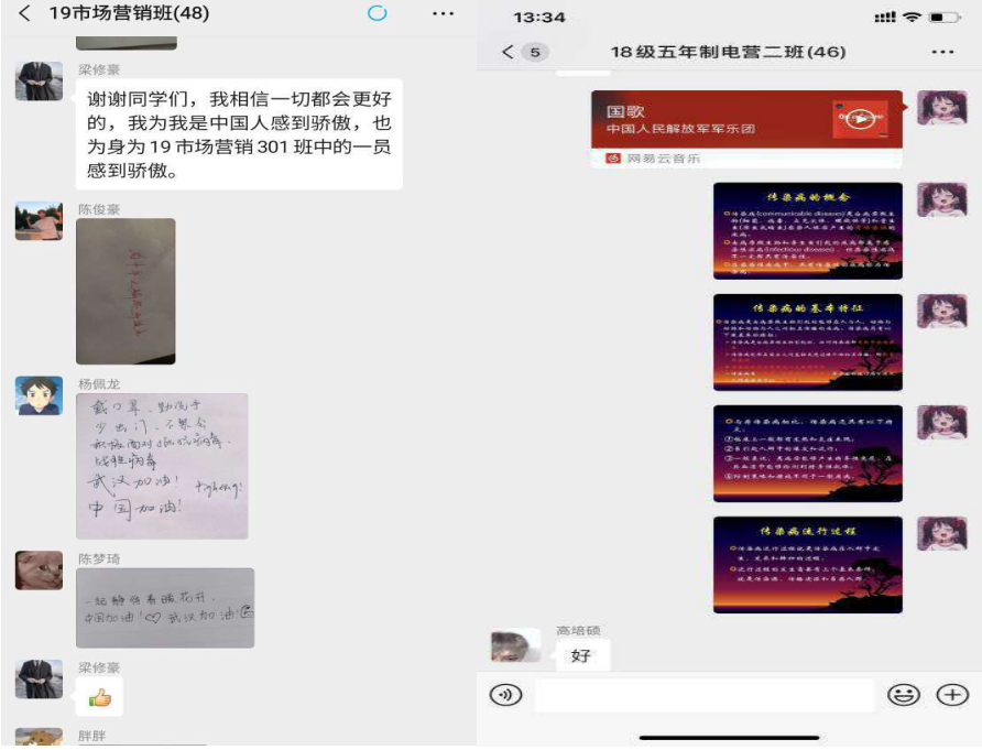 这次团课我们线上开展,各班以放国歌唱响爱国主义主旋律,弘扬民族精神。还进行了“行动抗击疫情,笔尖传递量”活动,用笔尖抗击力量,抗击战“疫”的坚定决心。