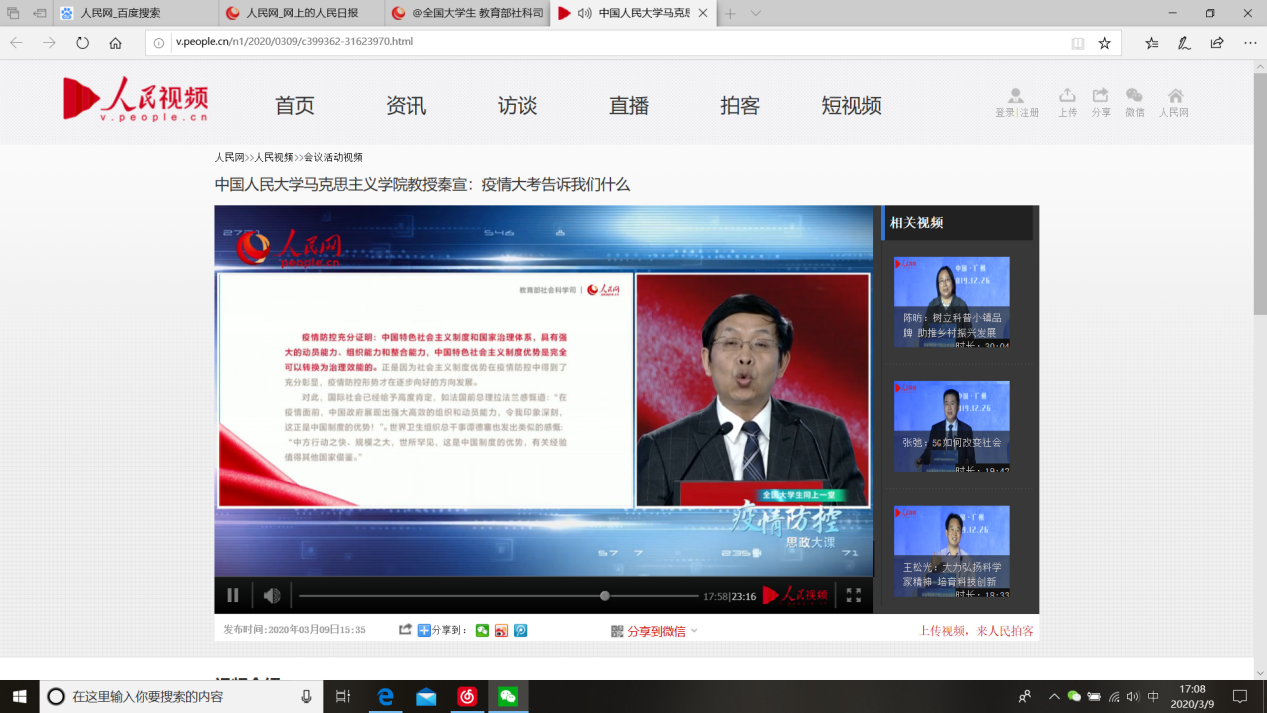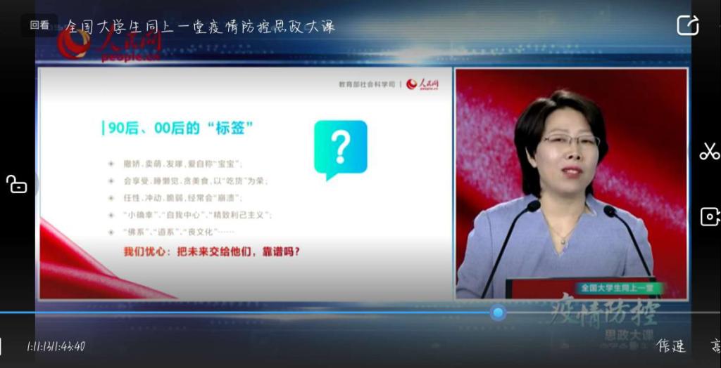 今天我们共同观看了人民网全国大学生共上防疫思政课。我收益匪浅,更加深入的了解了关于病毒,和防疫知识,以及中国抗击疫情的过程。