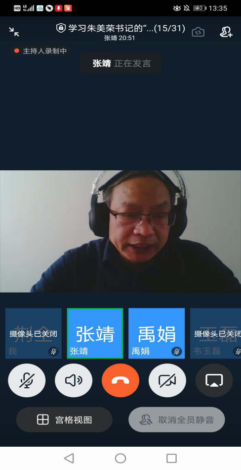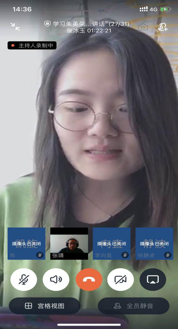 张冰玉主任正在钉钉平台领学《朱美荣同志在学院2020年党建工作会议上的讲话》。