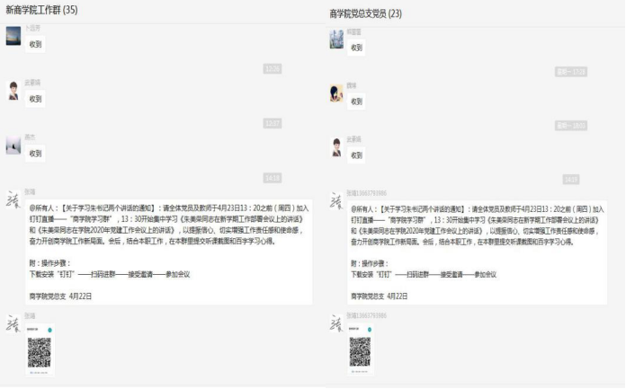 商学院全体党员及教师会后结合本职工作,在本群提交听课截图和百字学习心得。