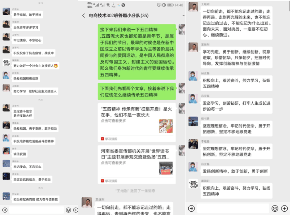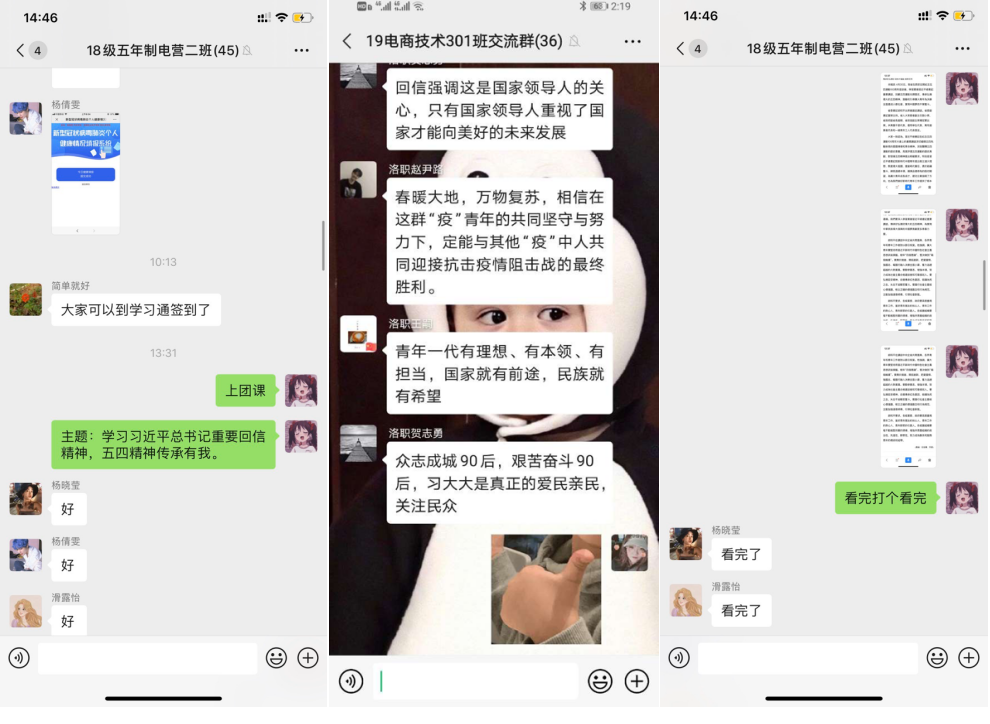“学习回信精神,肩负国家使命”。洛阳职业技术学院商学院团总支于2020年4月30日下午开展“五四精神传承有我”线上主题团课。