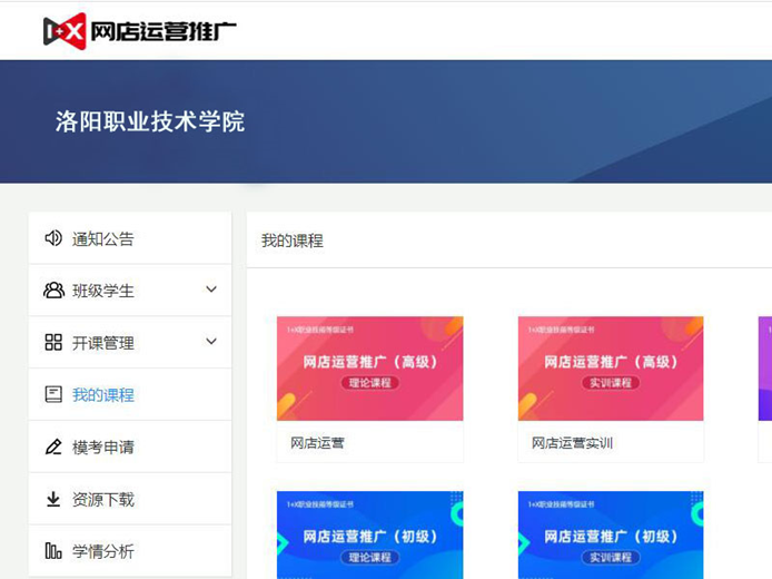 4月乘着国家“1+X证书制度试点工作”的东风,洛阳职业技术学院领导亲自挂帅,教务处擂鼓摧征把关,商学院李向直院长挥旗督战,张靖教学副院长上阵助战,电商教研室全员参战,通过“政校行企”集体协同战斗,于5月11日顺利攻下“网店运营推广” 职业技能等级证书关隘,为高质量培养电商应用型技能技术人才奠定坚实基础。