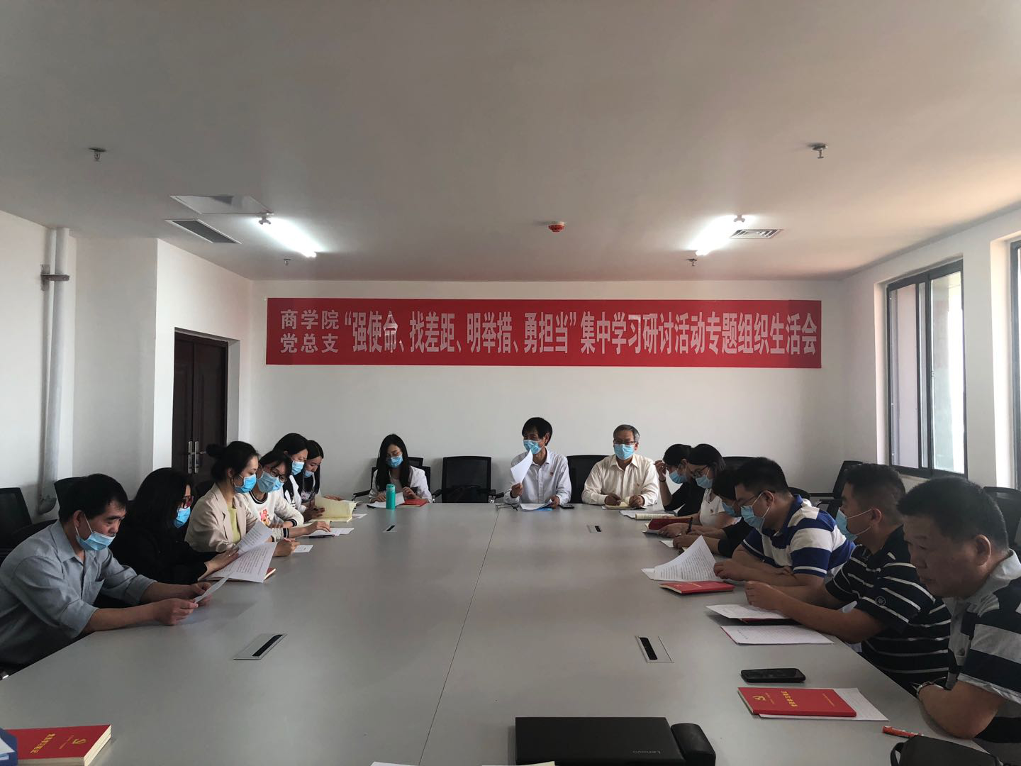2020年5月14日下午4:00,商学院党总支全体党员在伊滨校区大学生活动中心四楼商学院会议室召开“强使命 找差距 明举措 勇担当”集中学习研讨活动专题组织生活会。党总支书记、院长李向直对照“四查四看”率先发言、自我剖析,深入查摆问题,开阔发展视野,细化深化举措,推进工作走实,立足本职工作,强化担当落实。与会党员深有感触,一一对自己的思想、工作、学习、行为进行剖析,并展开批评和自我批评,深触及心,效果明显。作为一名党员,我们永远不要忘记入党时的誓言;作为教师党员,时时明白为谁培养人、培养什么人、怎样培养人,做“有理想信念、有道德情操、有扎实知识、有仁爱之心”的好老师。我们要抢抓机遇,充满激情,干劲十足,只争朝夕,不负韶华,为学院的建设和发展贡献自己的力量。
