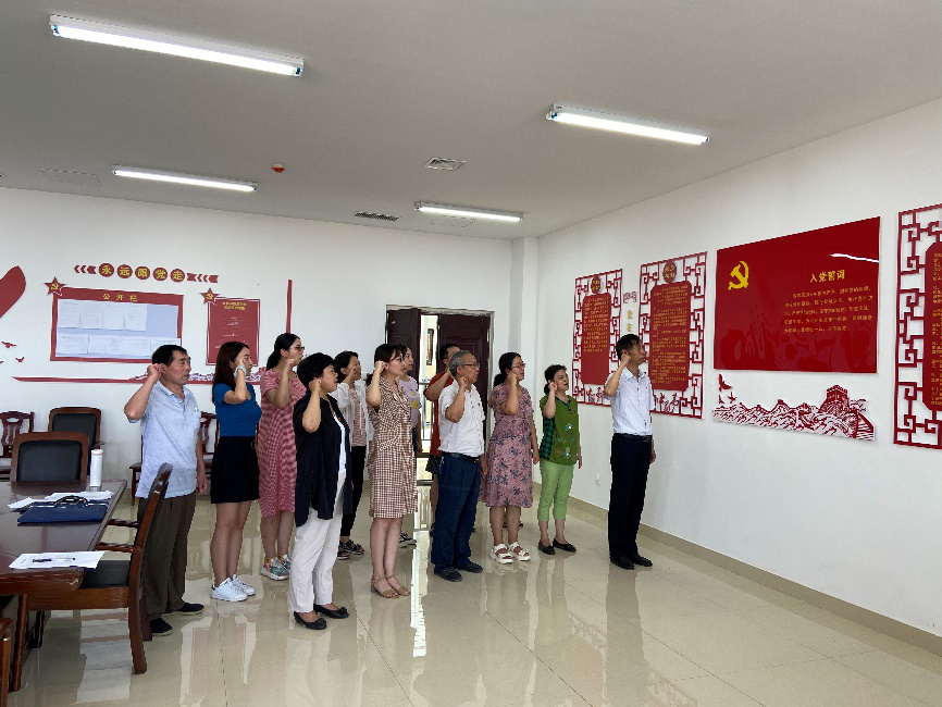活动由重温入党誓词开始,在李向直的带领下,商学院党总支全体党员面对庄严的党旗重温了入党誓词。通过重温誓词,让总支的党员同志们牢记入党时的庄严承诺,牢记对党和人民立下的誓言,提醒我们不忘初心,以合格共产党员的标准砥砺前行,发挥模范带头作用。