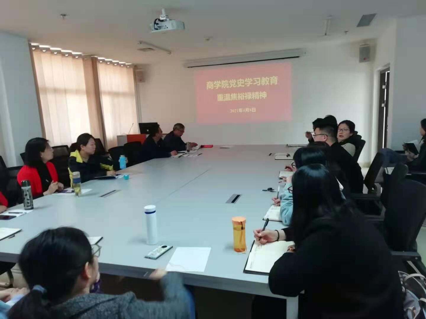 4月8日下午,商学院组织全体教职工在大学生活动中心四楼会议室开展党史学习教育——重温焦裕禄精神,学习活动由商学院党总支副书记马选宝主持。