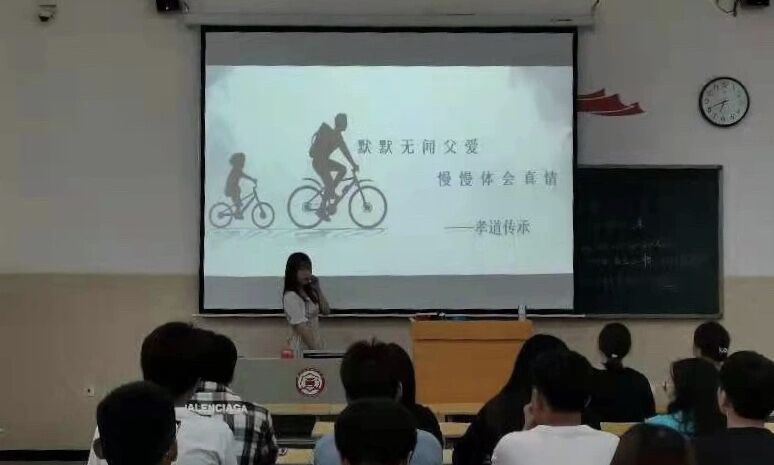 此次团课活动以“父爱”为核心,以同学们对父爱的感激为展开,通过观看影片、PPT演讲、同学发言等方式来让同学们体会到父亲对孩子的爱深厚而又伟岸,讲解过程中主持人为同学们介绍了父亲节的时间以及父亲节的由来,父爱无言,父爱常以他独有的沉静,诠释着爱的责任。