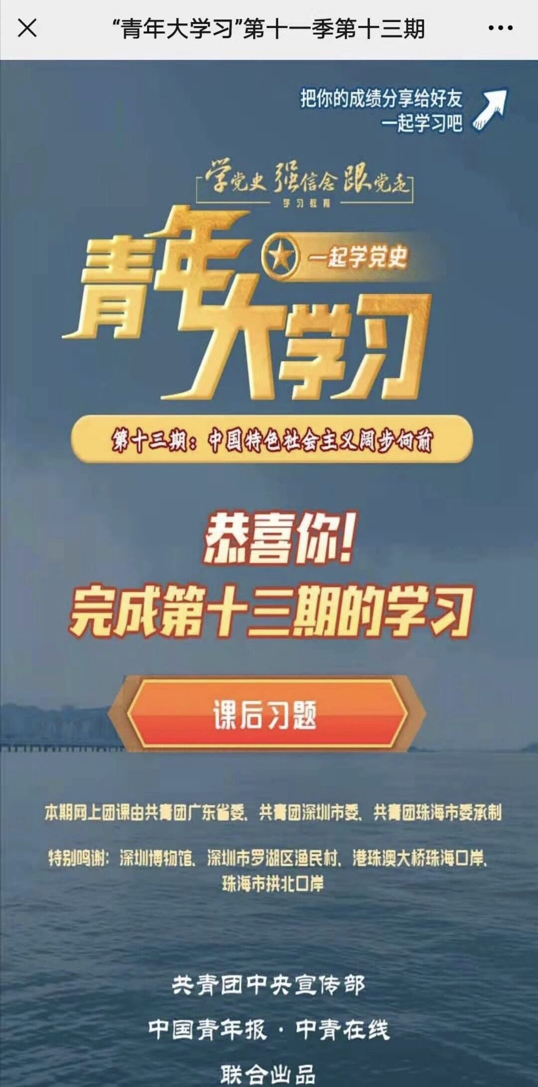 本次团课结束后,团支书组织本班学生学习青年大学习第十一季第十三期。