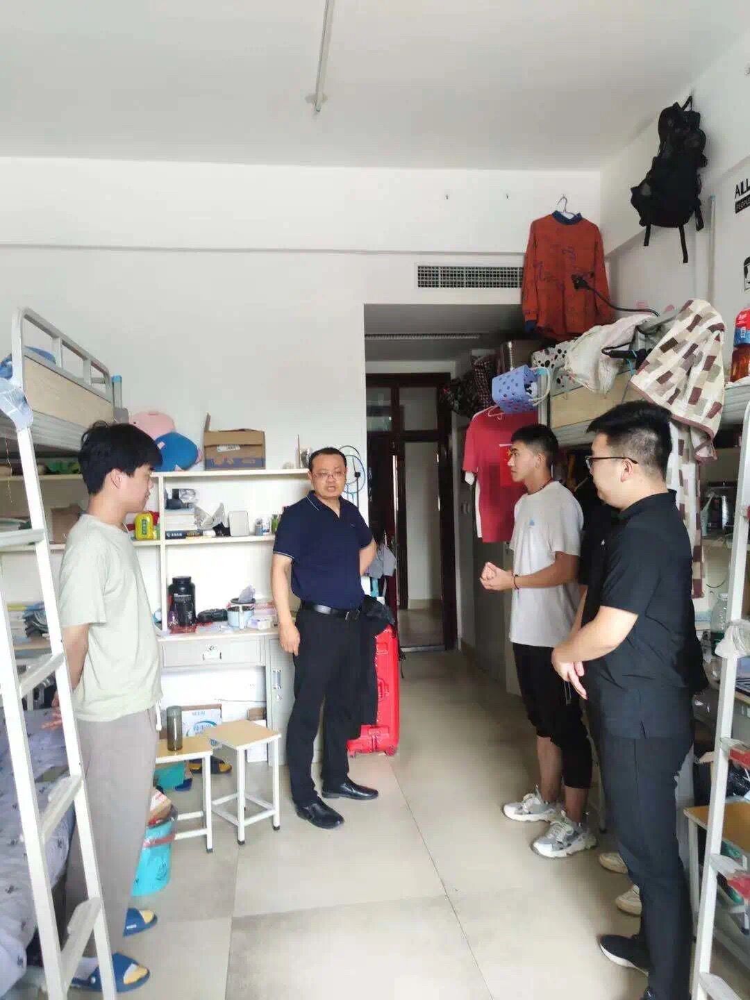 会后,学院领导及全体专兼职辅导员深入男女生宿舍,全面排查校园安全隐患,叮嘱学生不使用违规电器,重视用电用水安全,提升防诈防骗意识,从源头上化解安全隐患,切实保护生命和财产安全。此外,还提醒各位同学要定期做好卫生清洁,营造良好的宿舍环境,创建安全、文明、舒适的生活环境。