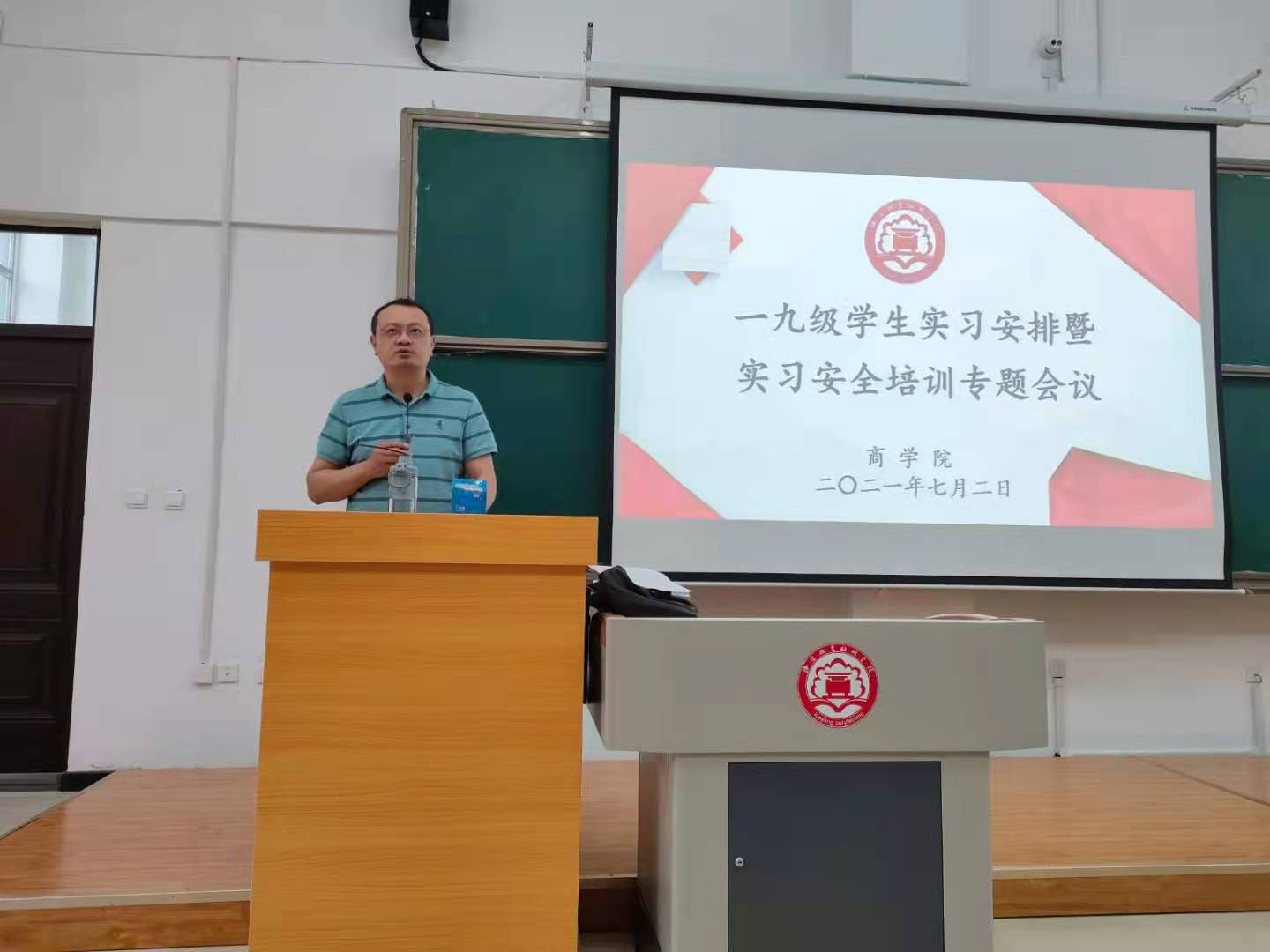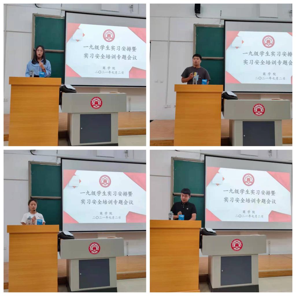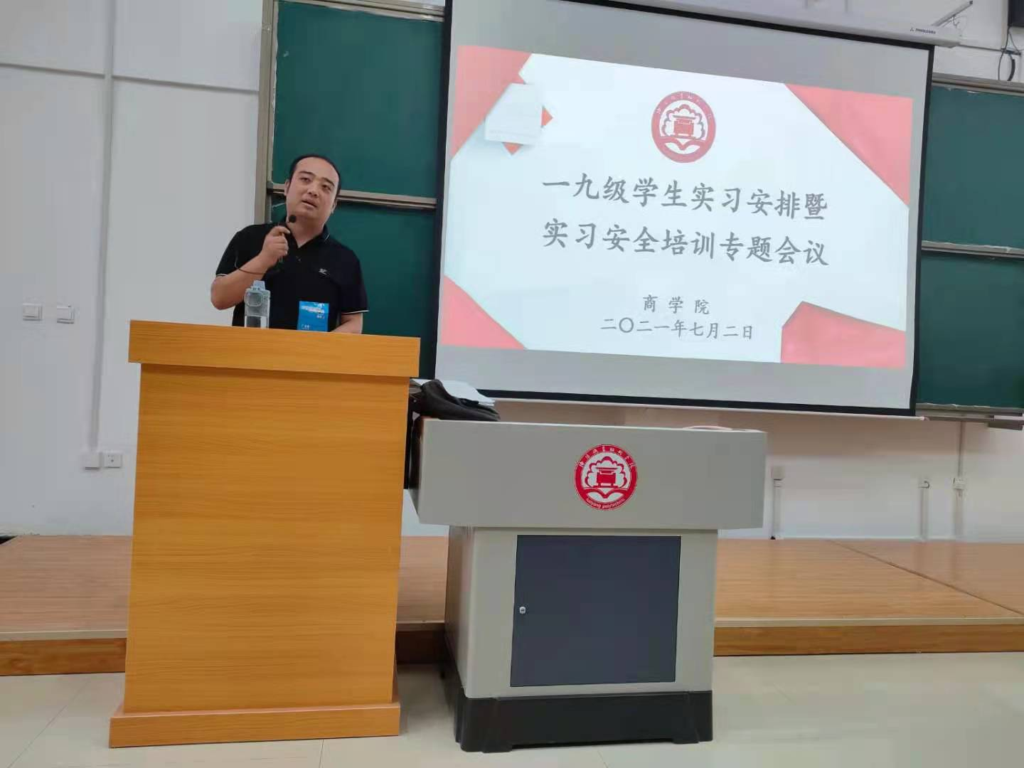 商学院院长王军华讲话并对实习安全等工作提出了具体要求。一是恰逢建党百年华诞,在实习工作中同学们要坚定正确的政治方向,将党史学习教育与完成实习任务有机结合起来,坚持政治学习和实习训练相结合,在实习中要体会百年大党的丰功伟绩,从实习单位的快速发展感受中国特色社会主义的科学性和正确性。作为预备党员和入党积极分子要汇报实习和思想工作,定期要上交思想汇报。二要不忘实习目的、意义和任务。要牢记实习工作是职业教育的重要环节和核心部分,是学生职业规划的起点,要反对一切逃避实习、不实习和“偷工减时”的行为,圆满完成实习任务。遇到难事、愁事、烦心事要及时向指导老师、辅导员反映,多听听父母和老师的意见和建议,不要自作主张。三是“安全无小事”,牢固树立安全生产意识,听从指挥,遵守规程。生活中慎交友,防诈骗。王院长特别强调,要树立劳动创造价值的理念,摈弃一切投机取巧、一夜暴富的不良观念。依靠自己的劳动所获得的收入才是最踏实、最有价值的,依靠踏实劳动取得收入,收获幸福生活。他要求,实习指导老师、辅导员要加强实习检查、安全教育和思想政治教育工作,严防学生人身、财产安全责任事故和舆情发生。四是坚持实习就业一体化工作要求,向实习找工作,以就业带实习。实习是就业的前奏和基础,就业是实习的目的和归宿。在实习中要将理论知识和岗位实际相结合,在基层实习工作中锻炼管理思维,思考岗位所需的知识、素质和能力要求,在岗位上边学习,边锻炼,边提升自己的职业能力,为未来职业发展提供能力基础。最后王院长鼓励同学们做好角色转换,遵纪守法,尽快适应实习单位的岗位要求和企业文化,以饱满的热情和良好的精神面貌迎接实习、完成实习,高高兴兴得去实习,平平安安的回校园。