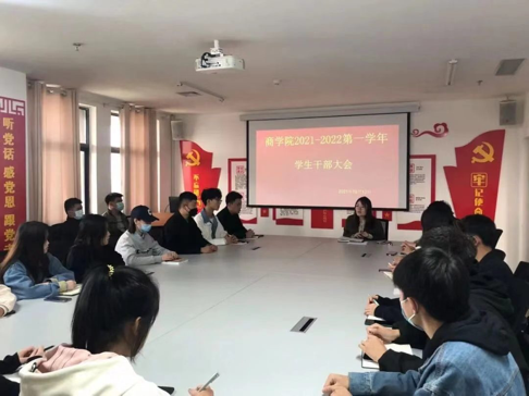 新学期伊始, 为了进一步加强我院学生干部队伍建设,提高学生干部的综合素质,增强学生自我教育,自我管理,自我服务的意识,充分发挥学生干部的桥梁纽带和模范带头作用,10月12日下午商学院在大学生活动中心4-401开展了学生干部大会,本次会议由学工办主任张冰玉主持召开。