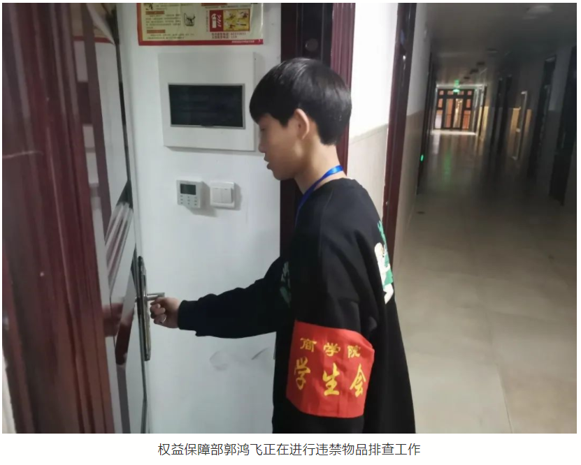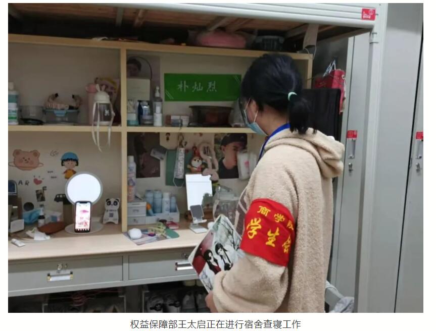商学院权益保障部安全大检查覆盖每一间学生宿舍,做到不留空白、不留死角。通过本次安全大检查,改善了我院学生宿舍的卫生状况,提高了同学们安全意识,加强了自我管理能力和自我约束能力。为建设温馨宿舍,营造整洁舒适的生活环境添砖加瓦。