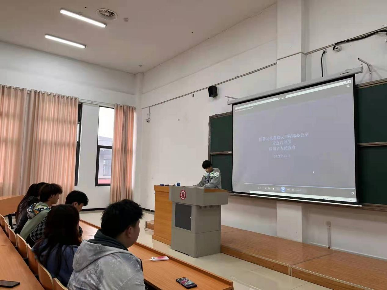 3月14日,为了让同学们学习抗震救灾知识,掌握自救互助技能。洛阳职业技术学院商学院权益保障部组织各班班长、保卫委员,在2号教学楼407教室,观看《应急使命·2021》抗震救灾演习电视专题片。