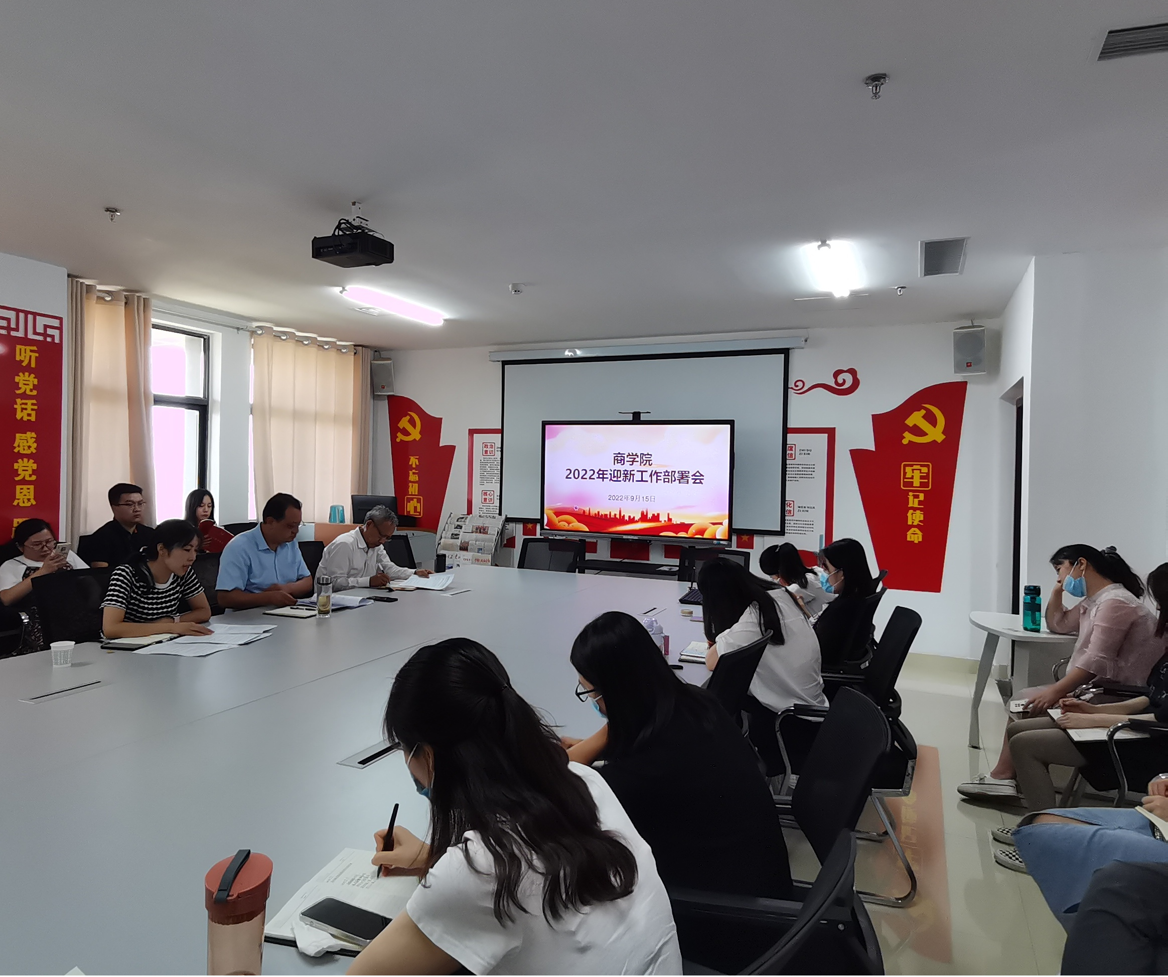 为了更好地配合学校做好2022年新生入学迎接的相关工作,保障新生顺利完成报到和尽快熟悉校园环境,9月15日下午,商学院在大学生活动中心四楼会议室召开专题会议,研究部署2022年秋季学期迎新工作。商学院院长王军华、副院长张靖、学工办主任张冰玉、全体教师参加会议。会议由商学院党总支副书记李双双主持。