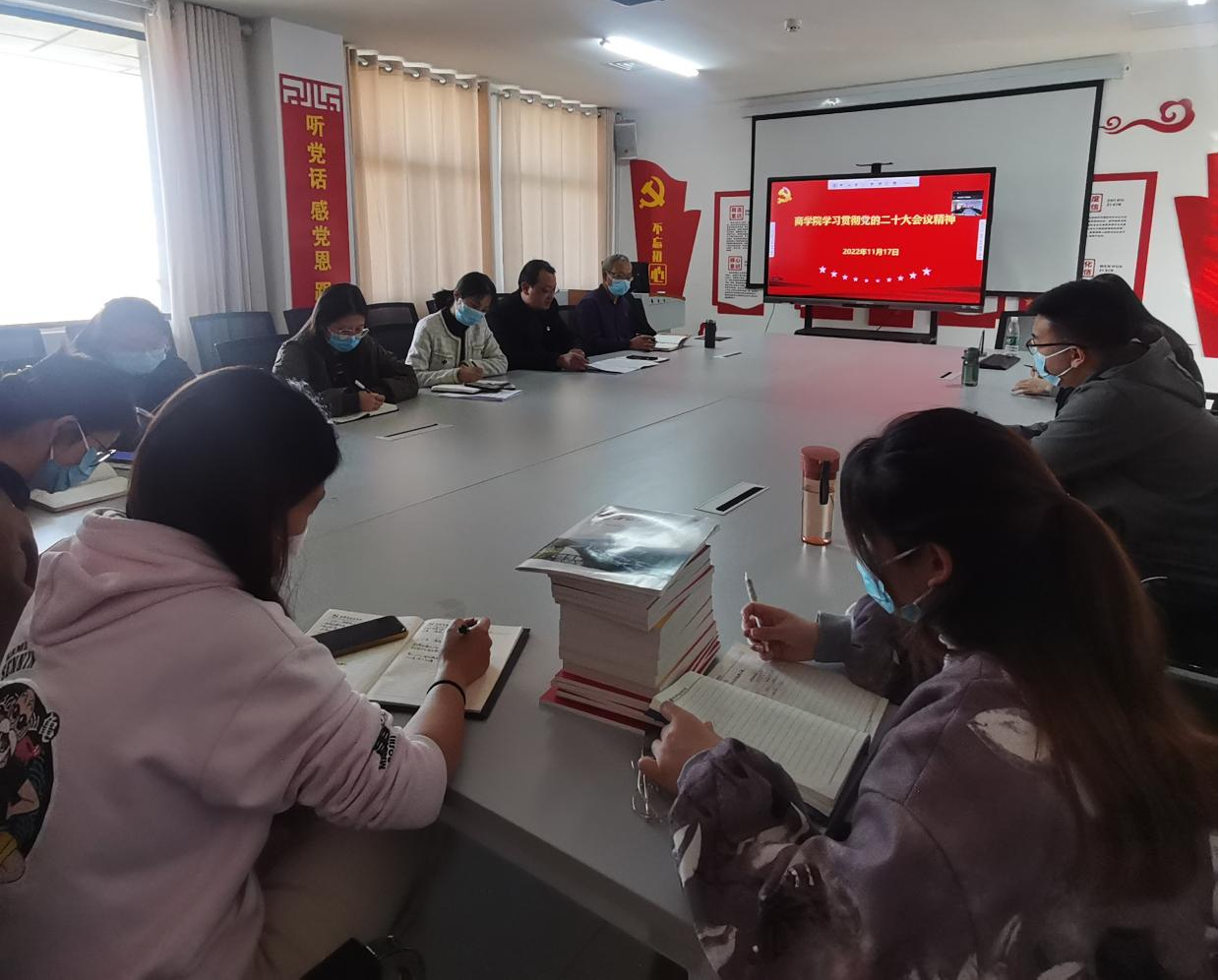 最后王军华强调把学习宣传贯彻党的二十大精神作为当前和今后一个时期的首要政治任务,在全面学习、全面把握、全面落实上下功夫,突出思想武装、突出求实求效、突出结果导向、突出统筹谋划、突出长效机制,把着力点聚焦到习近平总书记在党中央的核心、全党的核心地位,习近平新时代中国特色社会主义思想是党必须长期坚持的指导思想上。要求全体教职工要切实把思想和行动统一到党的二十大精神上来,贯彻落实到工作中去,对标我校省级“双高校”、职业大学建设的总体目标,迅速兴起学习宣传贯彻热潮,推动党的二十大精神深入人心,在重振洛阳辉煌、书写绚丽篇章中贡献商学院力量。