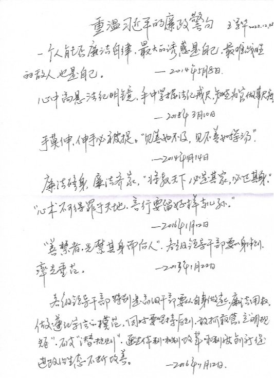 院长王军华带领家人一起重温习近平总书记关于廉政教育警句