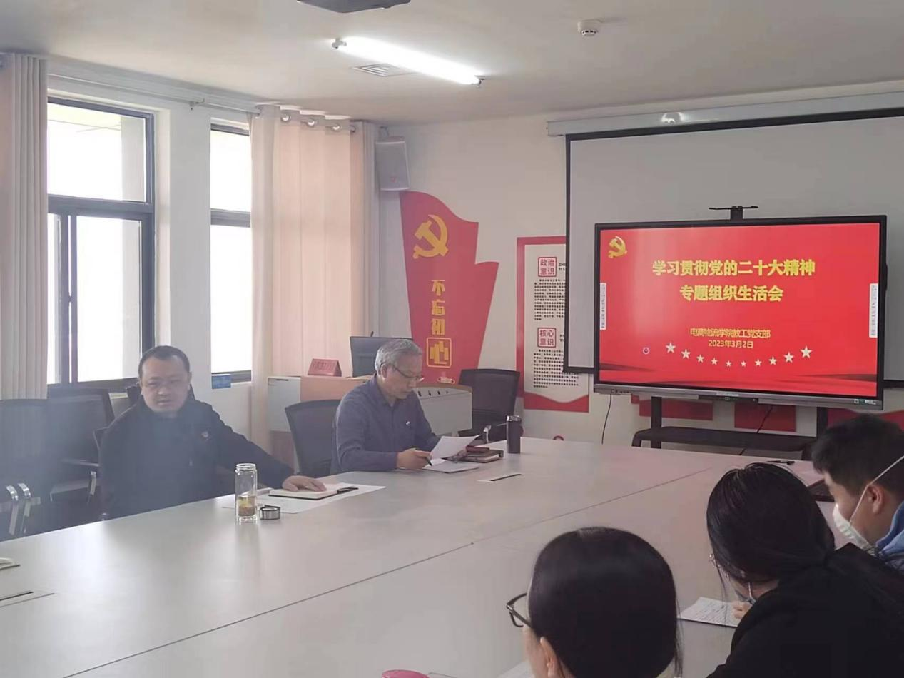 为深入学习宣传贯彻党的二十大精神,把思想和行动统一到党的二十大精神上来,更好地团结引领党员同志永远跟党走、奋进新征程,3月2日下午,电商物流学院教工党支部在大学生活动中心403会议室召开学习贯彻党的二十大精神专题组织生活会,会议由教工党支部书记张靖主持,教工党支部全体党员参加。