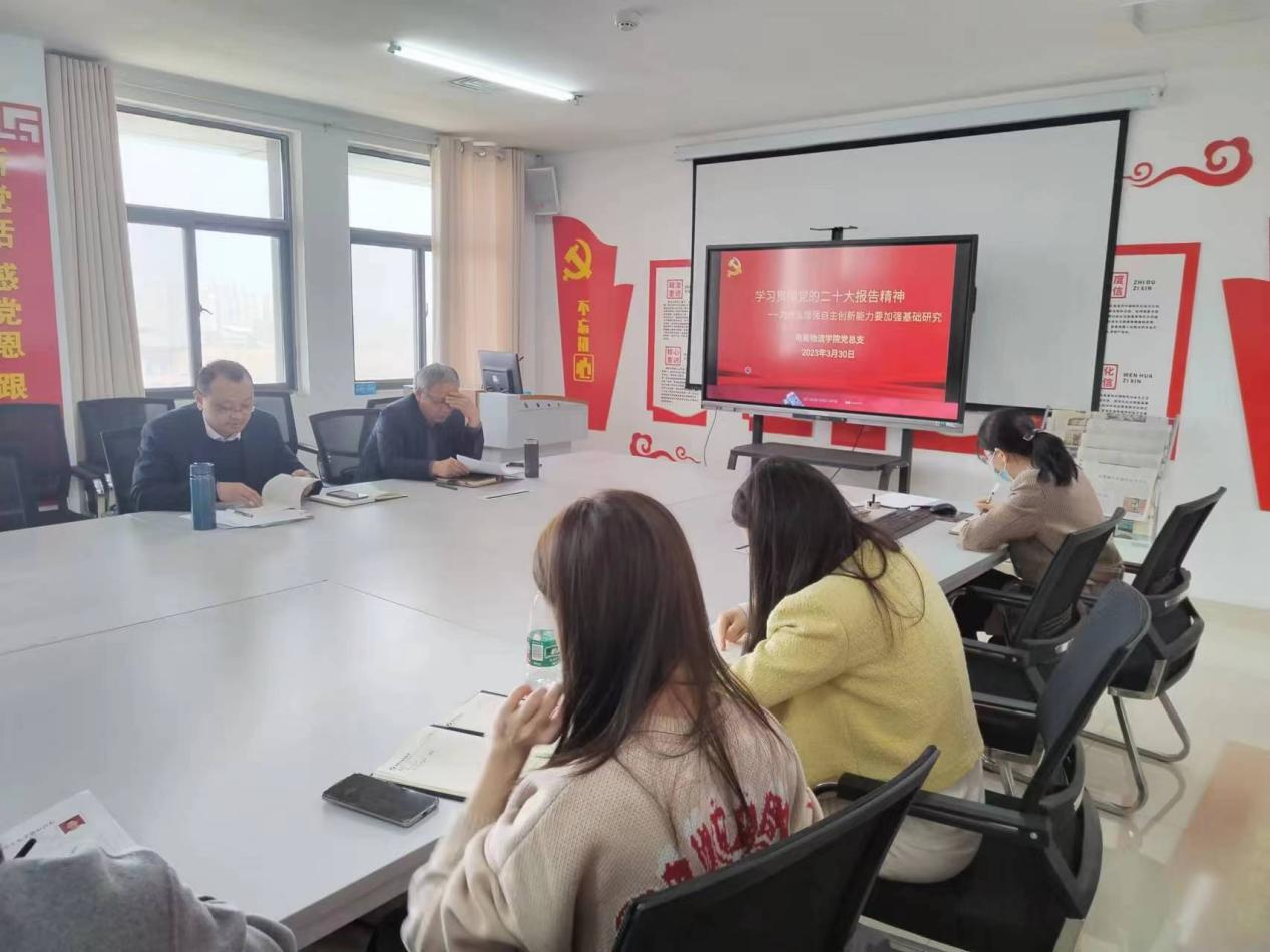 3月30日下午,电商物流学院党总支在大学生活动中心403会议室学习贯彻党的二十大精神——为什么增强自主创新能力要加强基础研究,会议由教工党支部书记张靖主持,电商物流学院党总支全体党员参加。