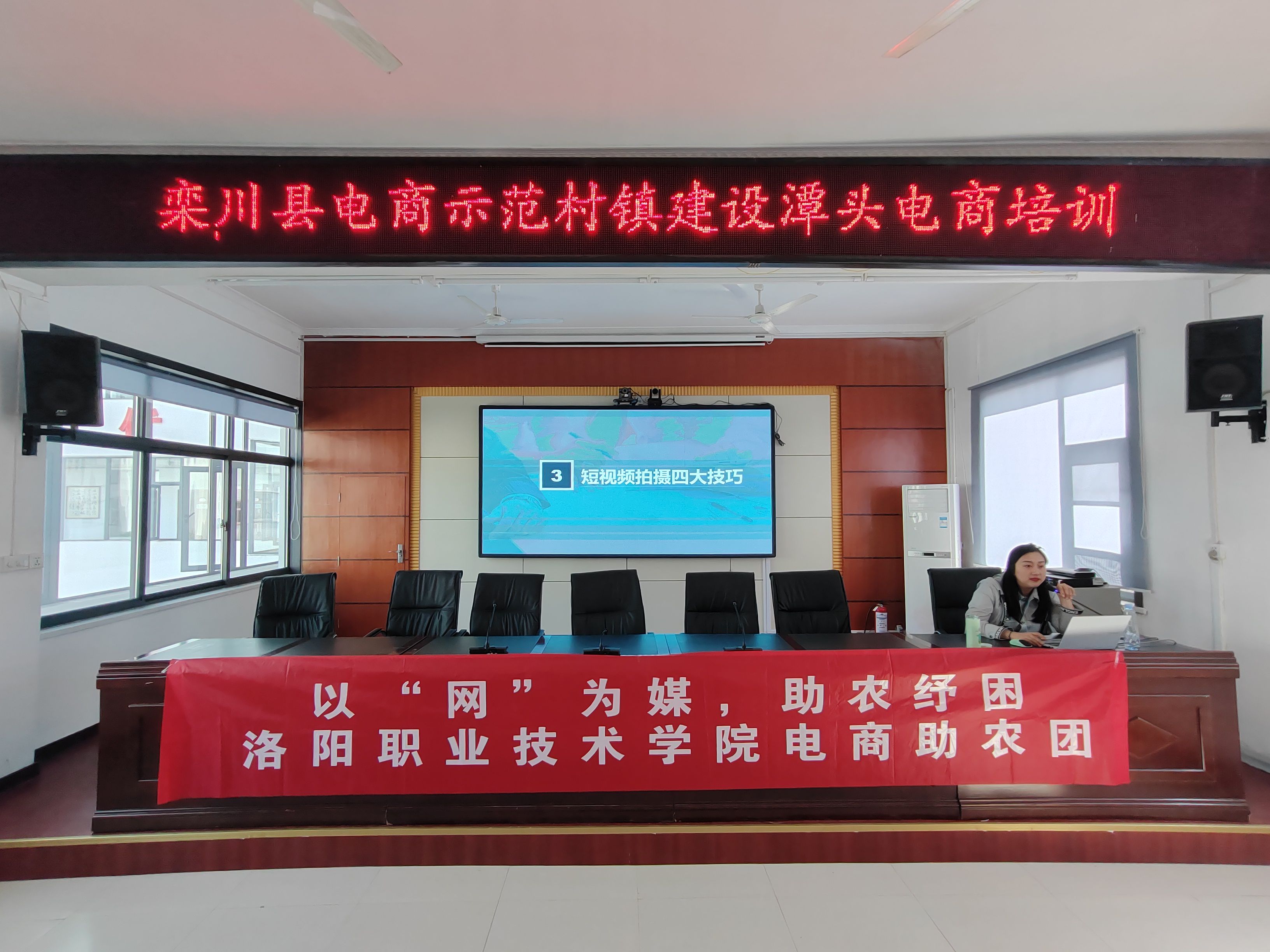 5月12日—5月14日,电商物流学院青年教师刘庭玉赶赴栾川县潭头镇和白土镇,开展为期3天的“短视频+”直播电商专业技能培训。践行“人人持证,技能河南”,支持栾川县电商示范村镇建设,培育“农创客”助力乡村振兴。