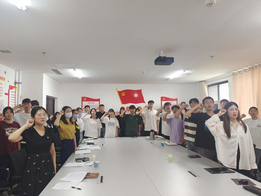 全体与会人员在李双双的带领下对着党旗宣读入党誓词,用铿锵有力的誓言许下中国共产党人最为神圣和庄严的承诺。