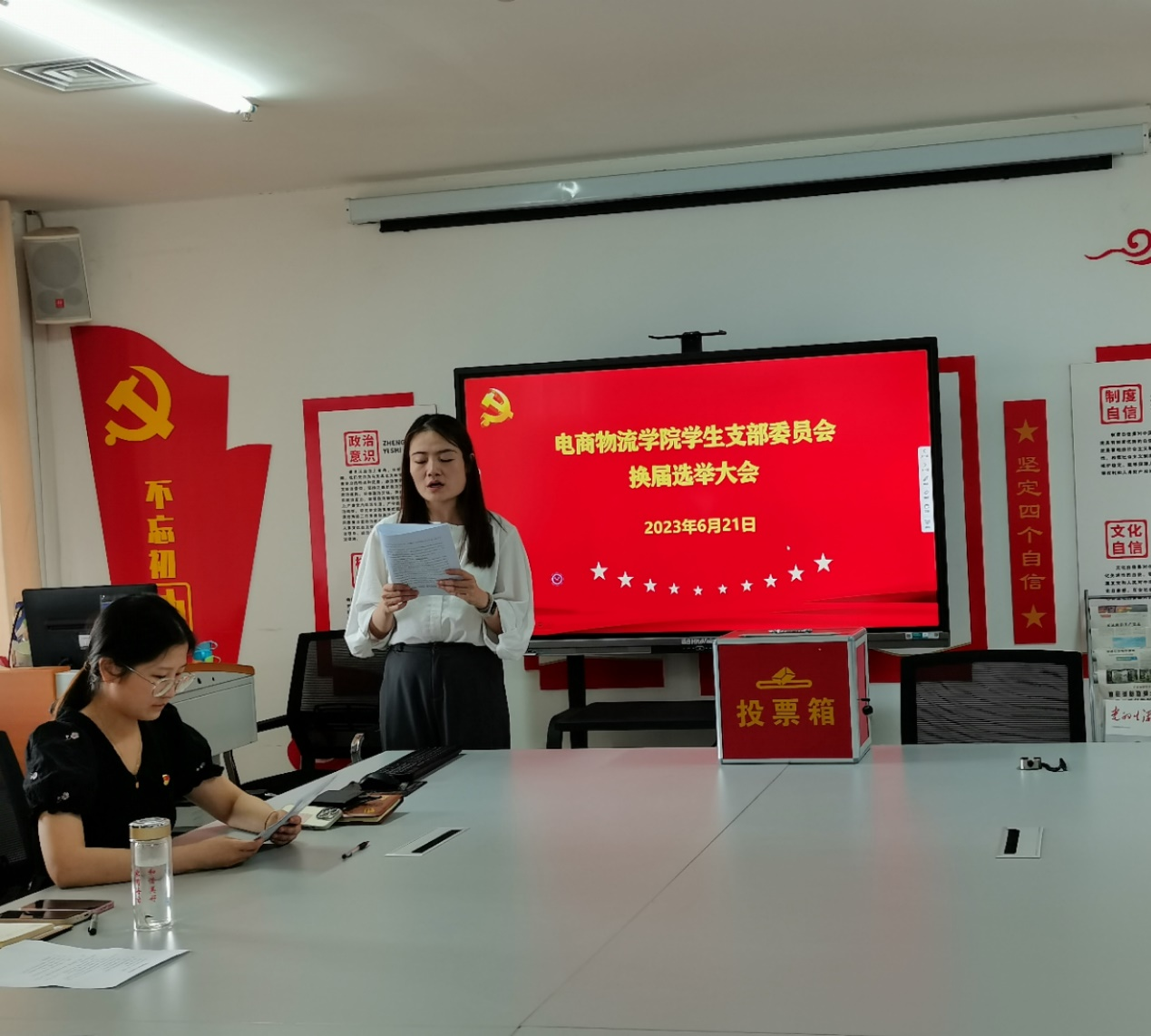 为加强党的基层组织建设,扎实推进党支部各项工作开展,经报请电商物流学院党总支研究通过,6月21日,电商物流学院学生党支部在大学生活动中心403会议室召开电商物流学院学生党支部委员会换届选举,学生党支部党员翟媛媛主持。