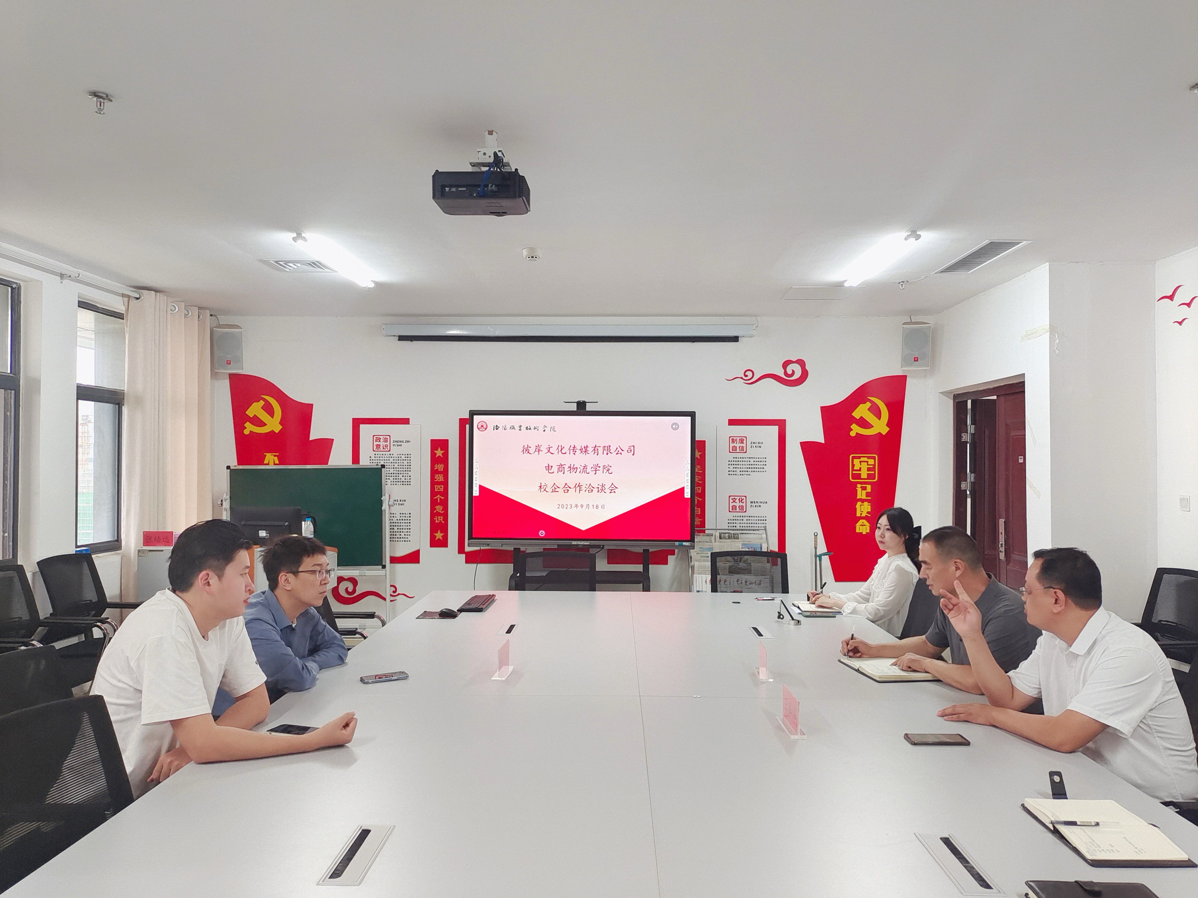 9月18日下午,电商物流学院和彼岸文化传媒有限公司在大学生活动中心403会议室进行校企合作洽谈。公司创始人郭阳、丁要辉以及学院党总支书记房长显、院长王军华、张皓远老师和王格格老师出席会议。