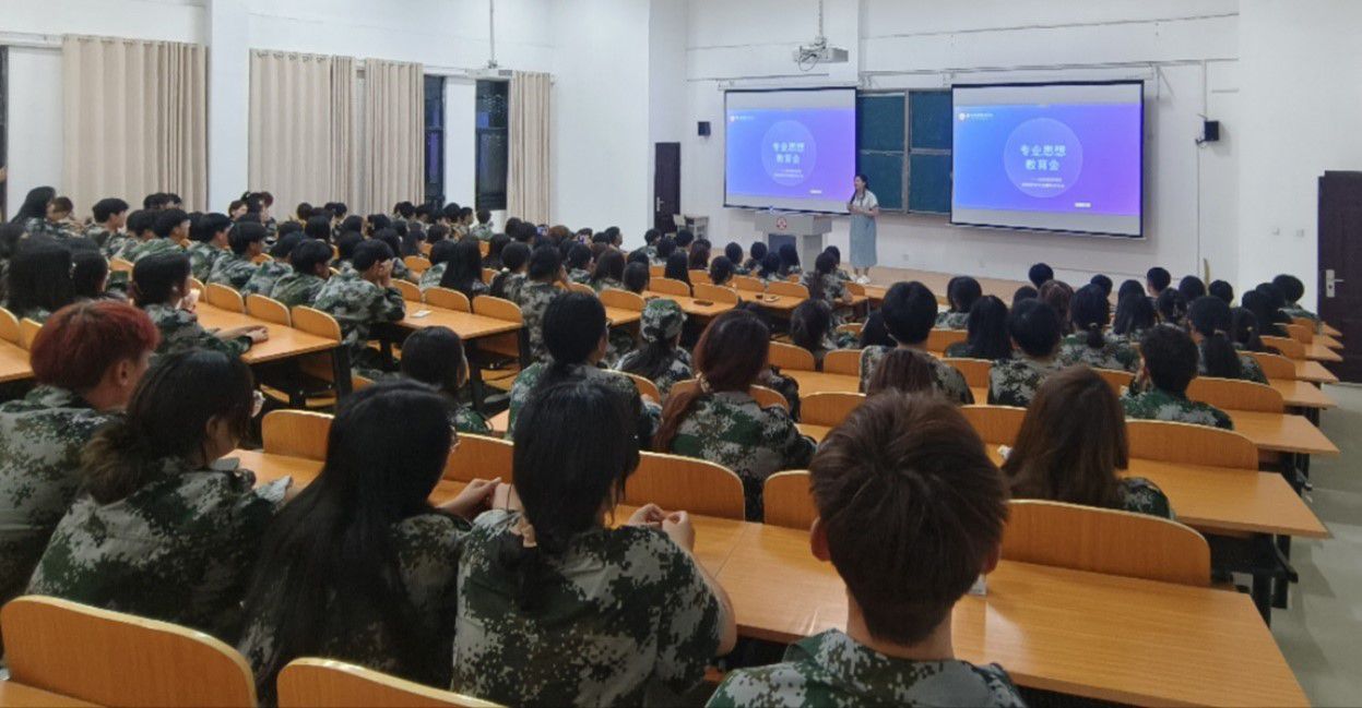 为使2023级学生全面了解专业发展趋势,加深专业认同,培养良好学习习惯,网络营销与直播电商专业于2023年9月20日-21日对新生进行了专业思想教育及岗位能力培养。本活动由教研室主任刘庭玉主持,专业课老师许亚楠及辅导员、班主任和157名新生等参加。