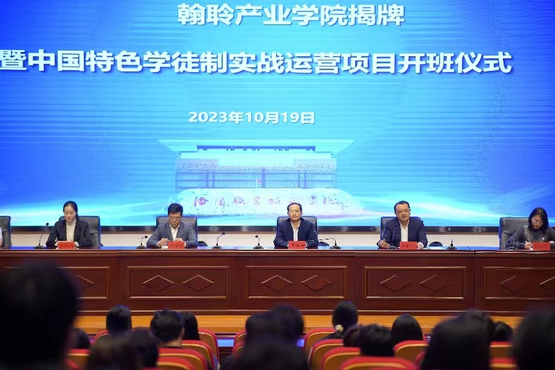 10月19日下午,电商物流学院在大学生一楼报告厅开展翰聆产业学院揭牌暨中国特色学徒制实战运营项目开班仪式,学校副校长李保安、上海翰聆信息技术有限公司总经理徐智慧出席并致辞。会议由电商物流学院院长王军华主持,学院相关科室负责人、企业项目有关负责人以及2022级实战运营项目学员参加。