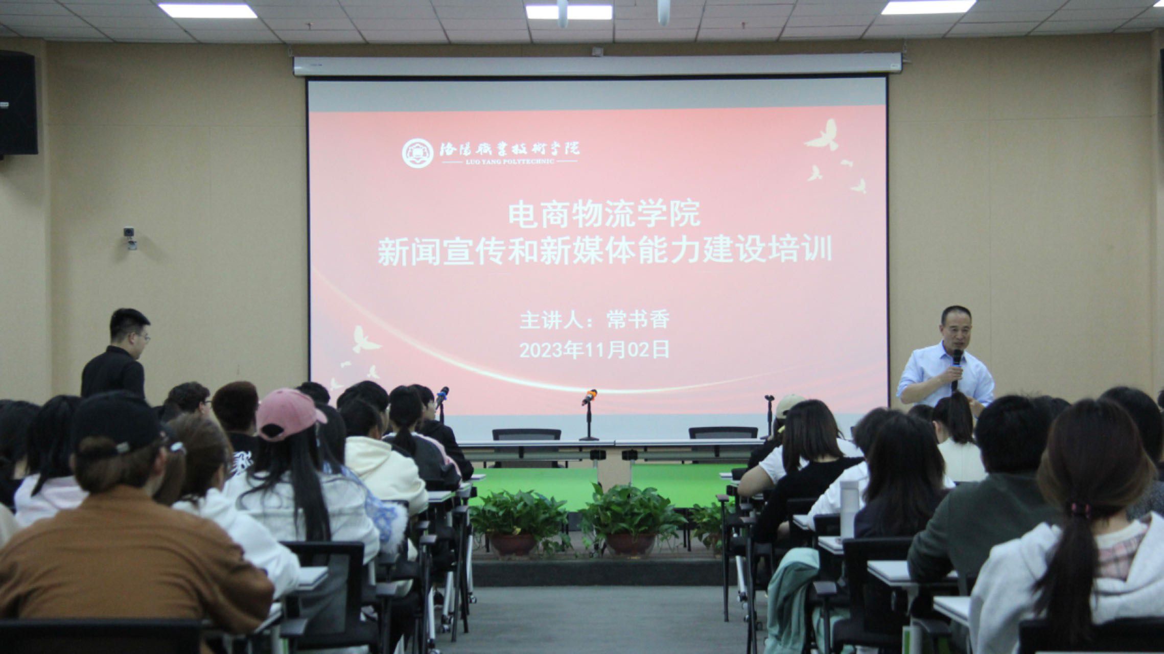 新闻宣传是学校与外界交流的纽带,是宣传学院风采的重要平台,为提高电商物流学院新闻宣传和新媒体建设的能力,促进学院宣传工作高质量推进, 2023年11月2日,我院特邀洛阳职业技术学院宣传部副部长常书香在图文信息中心708教师发展中心开展了专题培训——《写好校园新闻 讲好洛职故事》。培训由电商物流学院党总支书记房长显主持,全体教职工及学生代表50余人参加。