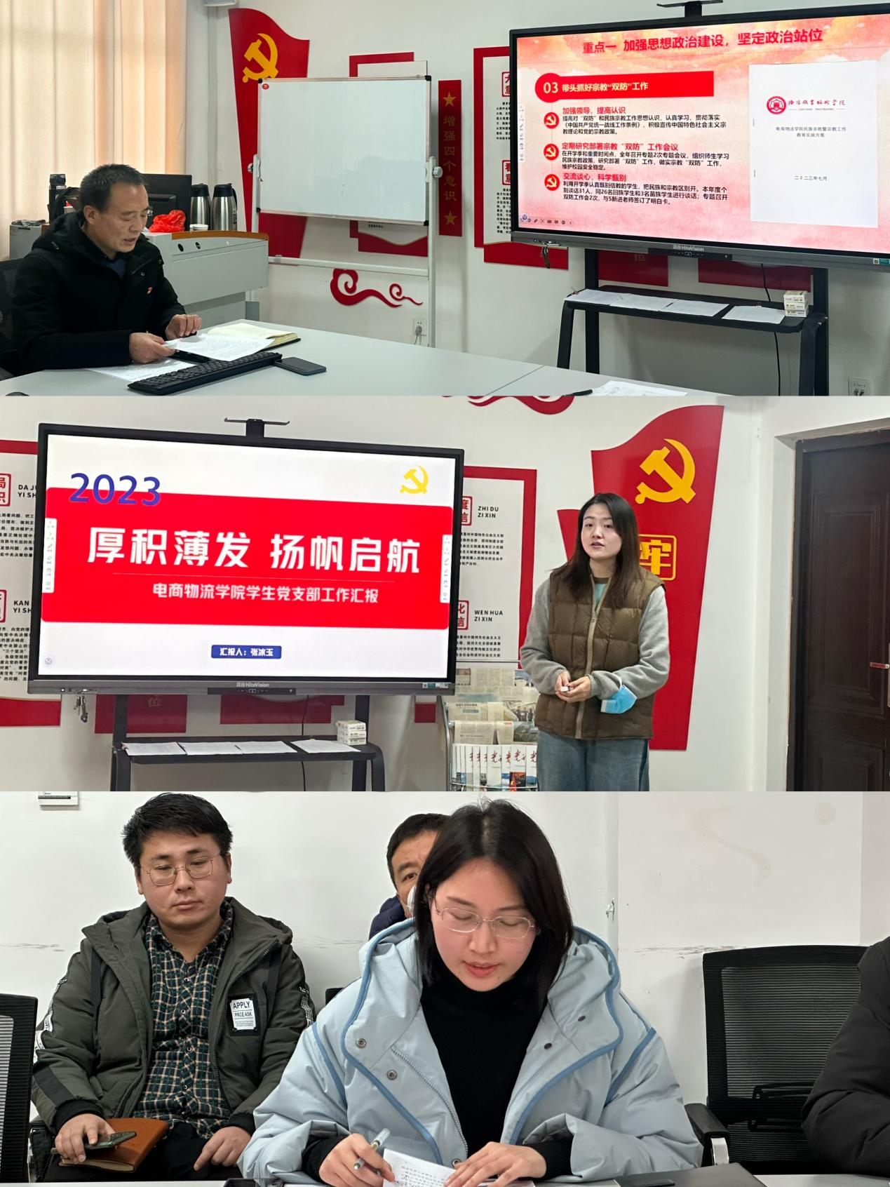 为全面落实学校党委抓基层党建工作述职评议考核工作要求,进一步做好电商物流学院党总支党建工作,1月17日下午,电商物流学院党总支在大学生活动中心403会议室召开2023年度党组织书记抓基层党建工作述职评议大会。校领导邓卫国、校纪检监察办公室主任李静雯、电商物流学院党总支书记房长显、院长王军华、副书记李双双、各党支部书记及全体教职工参加此次会议,会议由王军华主持。