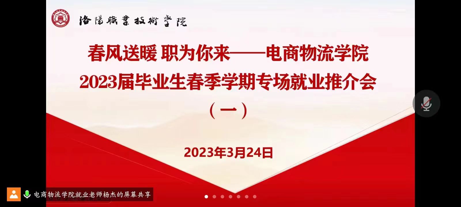 为扎实做好2023届毕业生就业工作,促进学生与企业需求精准对接,3月24日上午,电商物流学院在大学生活动中心403会议室举办“春风送暖 职为等你”2023届毕业生春季学期线上专场岗位推介会。