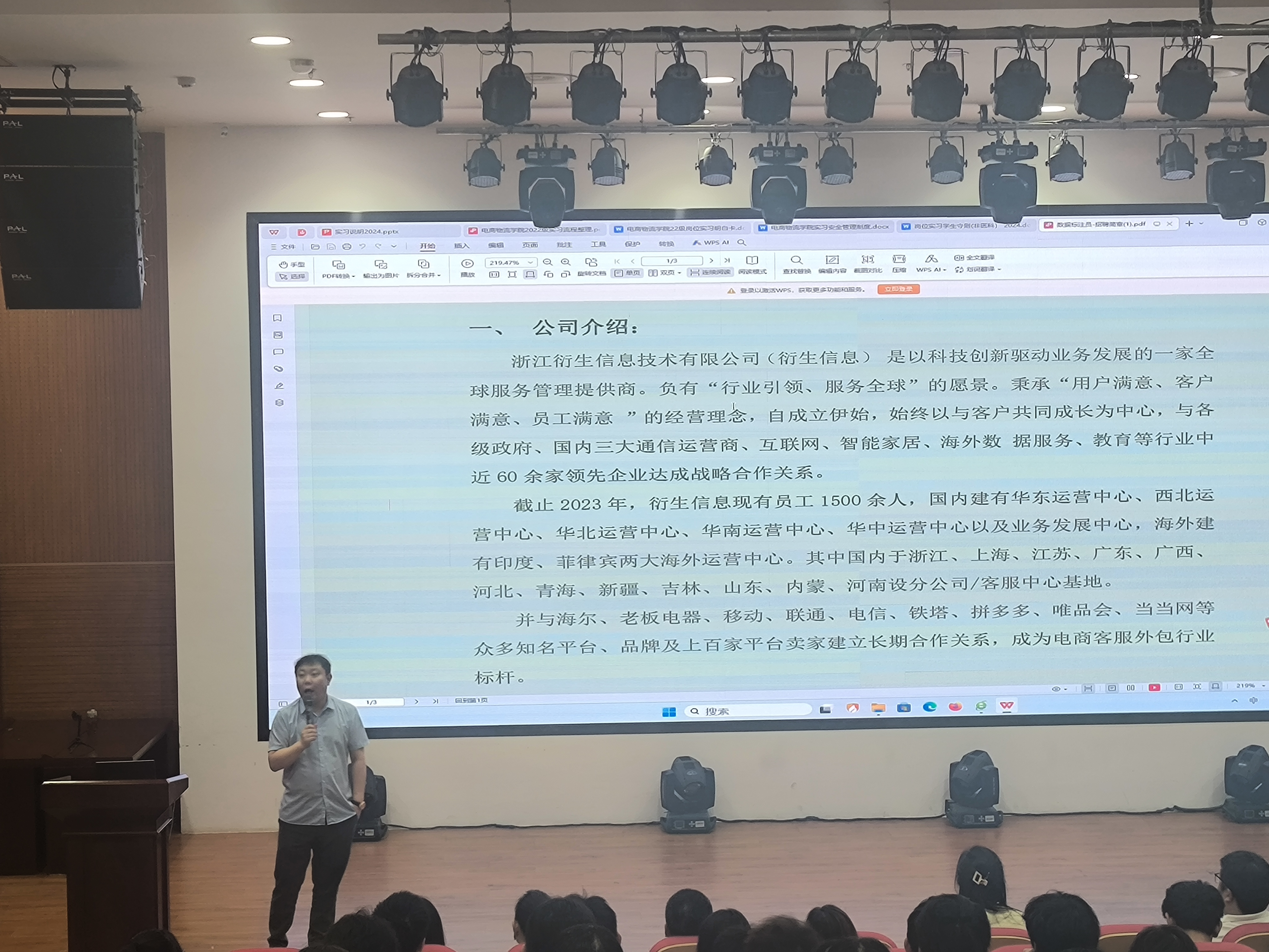 最后企业代表对相关岗位进行了宣讲,企业代表们纷纷表示:公司非常重视这次与大家的交流机会,也希望通过这次宣讲能让大家更加深入地了解公司的文化和价值观,以及各个岗位的工作内容和要求,同时欢迎同学们到各企业进行岗位实习。他们鼓励大家积极投递简历,展示自己的才华和潜力,同时也希望大家能够认真思考自己的职业规划和发展方向,做出明智的职业选择。