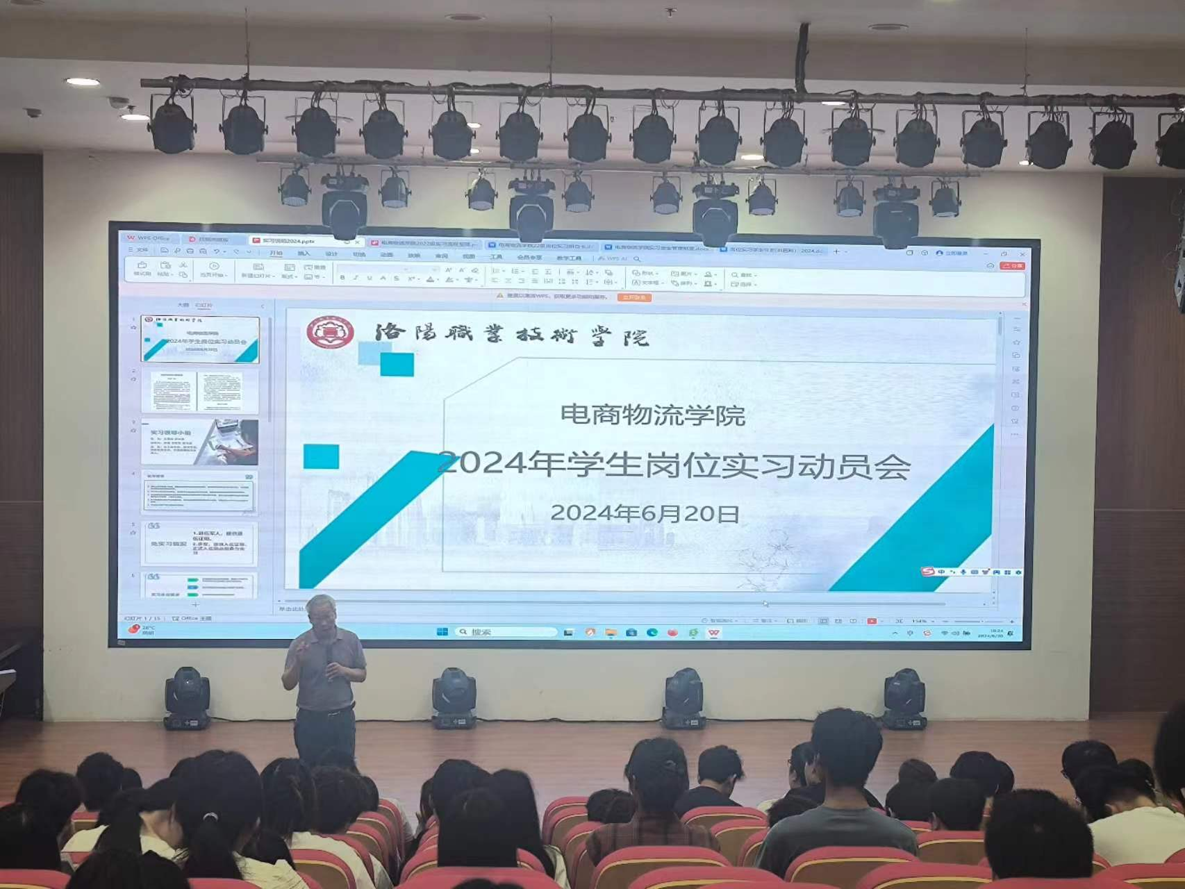 6月20日,电商物流学院在心理剧场举行了2024年学生岗位实习动员会,为同学们做岗位实习报告,遵规守矩,加强实习教学管理,进行对口实习、安全实习和诚信实习,确保实习质量,为就业奠定素质能力基础。