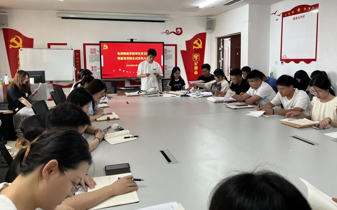 为进一步强化学生党员队伍建设,提升党支部的凝聚力和战斗力,6月18日,电商物流学院学生党支部在大学生活动中心403会议室召开预备党员转正式党员大会,党总支副书记李双双、学生党支部书记张冰玉及全体党员参加会议,会议由组织委员黎巧粉主持。
