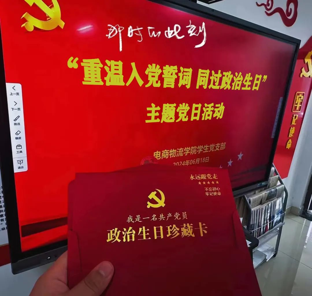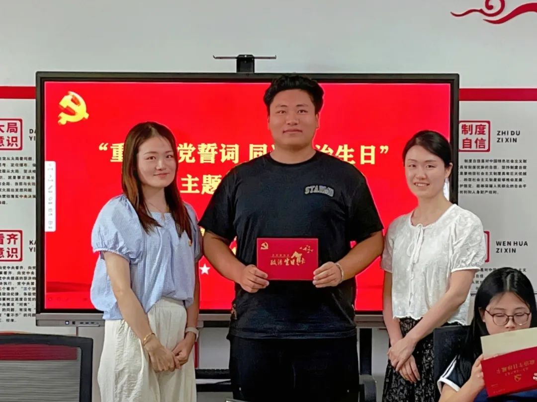 为了加强党员党性教育,提高党员的荣誉感、责任感和使命感,6月18日,电商物流学院学生党支部在大学生活动中心403会议室开展“重温入党誓词,同过政治生日”主题党日活动,党总支副书记李双双、学生党支部书记张冰玉及支部全体党员参加会议。