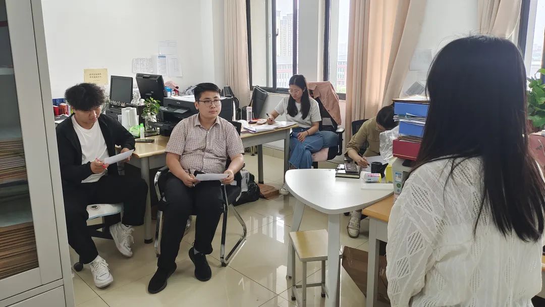 参加面试的同学们身着正装,满怀信心地走向办公室,同学从自我介绍、岗位认知、工作展望等方面进行阐述,每一位同学都以饱满的精神状态展现自我。面对老师、学长学姐们抛来的难题,同学们从容应对,充分发挥自身临场应变能力,从容不迫地回答,在倾听完同学们的自我介绍和回答的问题后,面试官们也对同学们有了更进一步的了解,同时也提出了一些建设性的意见和建议。