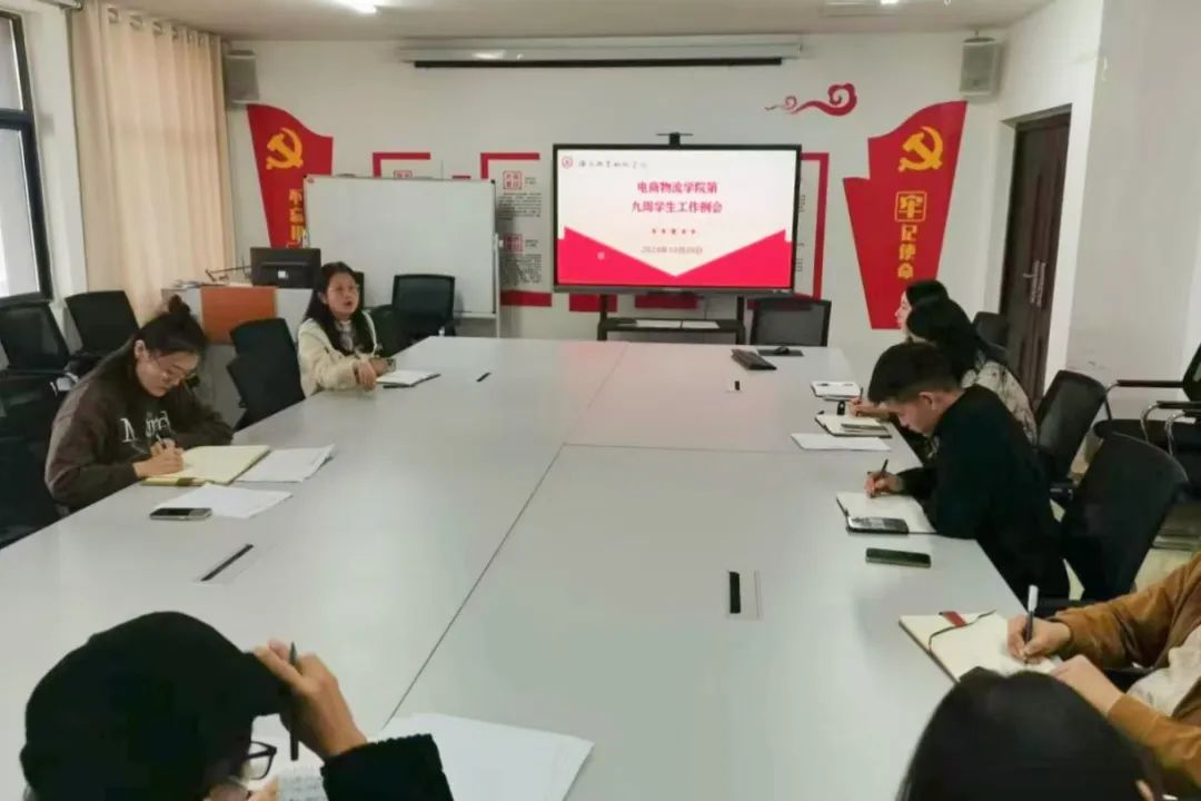 10月28日,电商物流学院在403会议室召开第九周学生工作例会,总结近期学生管理及思想政治教育工作,安排部署下一阶段重点工作,电商物流学院全体专兼职辅导员参加,会议由学工办主任张冰玉主持。
