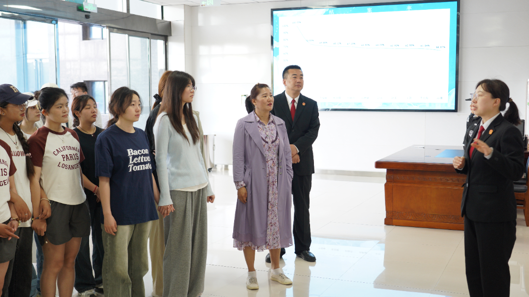 活动过程中,法院讲解人员向同学们详细介绍了人民法院的发展历程,带领同学们参观人民法院干警训练场地、人民法庭、申诉大厅等关键部门。同学们紧跟着讲解人员的脚步,认真听讲,积极与法院讲解人员交流与互动,深入了解工作人员的日常工作流程。在工作人员细致的讲解下,同学们感受到了法以民为本,民以法为天的深刻含义。
