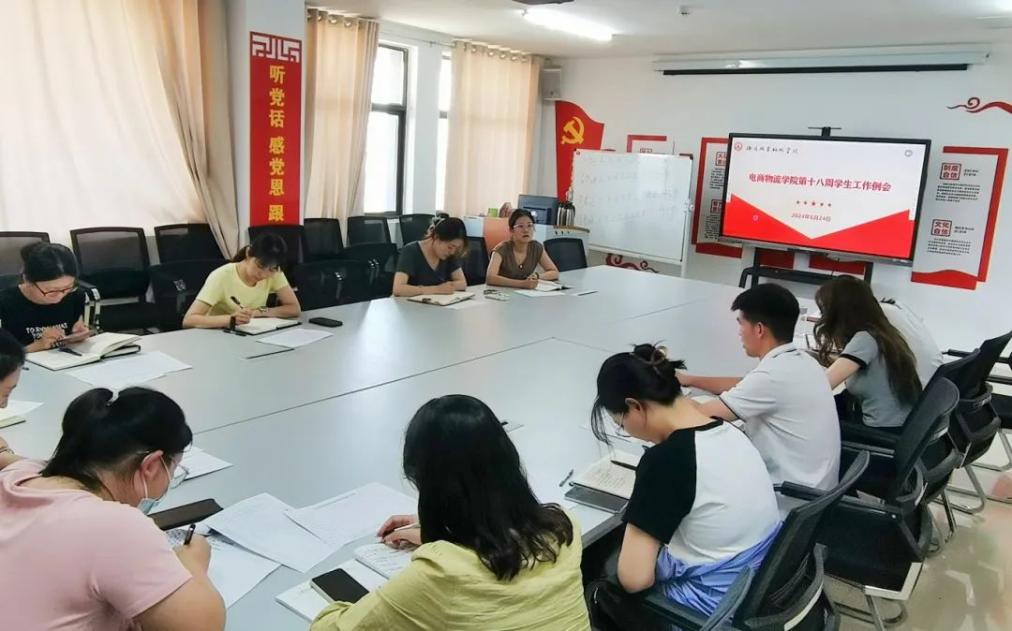 6月24日下午,电商物流学院召开第十八周学生工作例会,我院党总支副书记李双双、学工办主任张冰玉、团总支书记翟媛媛及全体专兼职辅导员参会,会议由学工办主任张冰玉主持。