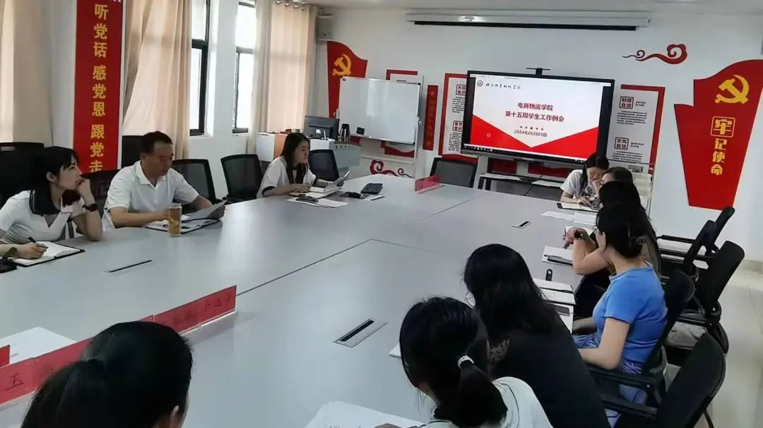 6月3日下午,电商物流学院在大学生活动中心403会议室召开学生工作例会,由学工办主任张冰玉主持,党总支书记房长显、党总支副书记李双双以及全体兼职辅导员参加会议。