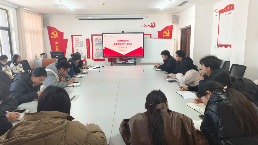 为进一步加强学生干部队伍建设,提高学生干部的综合素质和工作能力,推动各项学生工作顺利开展。12月3日,电商物流学院在大学生活动中心403会议室召开第十四周团学工作例会。团总支书记翟媛媛及全体学生干部参加会议。