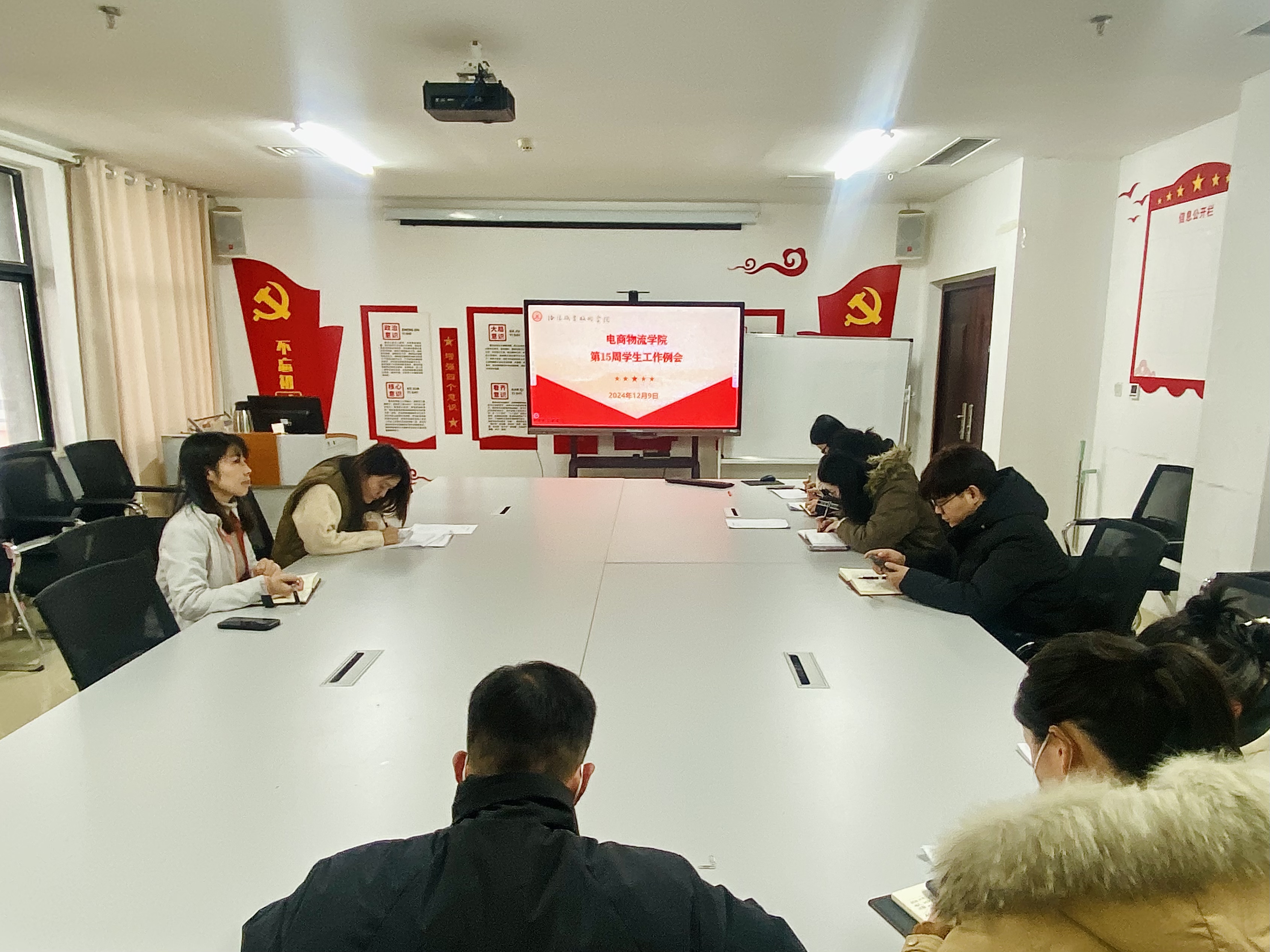 12月9日下午,电商物流学院于大学生活动中心403会议室召开第十五周学生工作例会。会议由学工办主任张冰玉主持,党总支副书记李双双及全体专兼职辅导员参加。