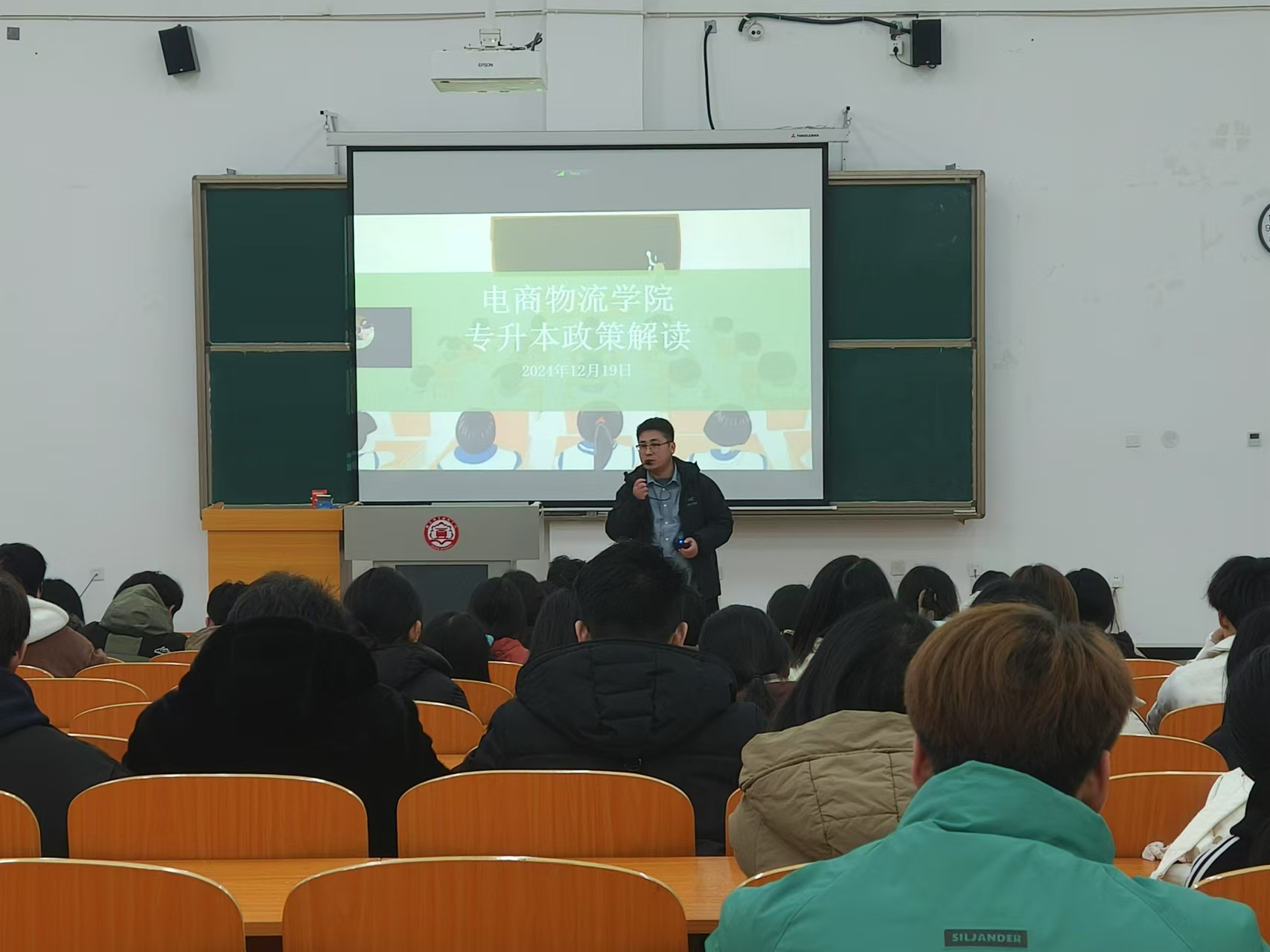 为了进一步提升电商物流学院的学风建设,12月19日,电商物流学院在4-407教室举办专升本政策解读会。招生专员纪鑫老师、2023级、2024级各班班长、学习委员及有志专升本的学生参加会议。会议由纪鑫主持。