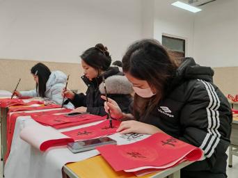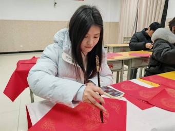 为了更有效地传承书法艺术,电商物流学院举办了春联书写活动。同学们笔走龙蛇、大胆挥毫,精心创作了一副寓意吉祥的春联。写好的春联可供学生们带回并张贴于宿舍门口,让大家在轻松愉快的氛围中,深入了解了传统节日丰富的文化内涵,还增添新年的喜庆氛围。