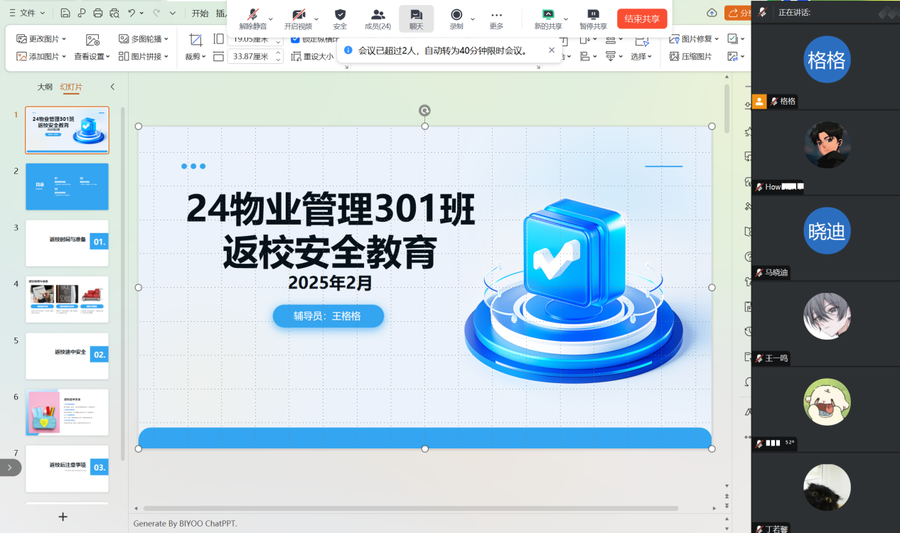 24物业管理301班举行线上返校教育班会