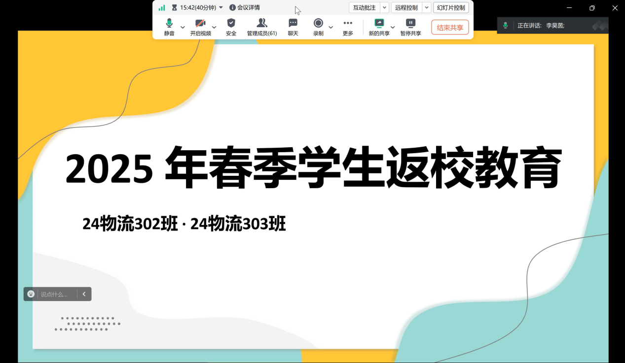 24物流302、303班举行线上返校教育班会