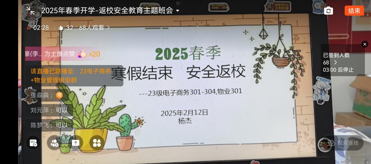 为了确保大家能够安全、顺利地开启校园生活,根据学校2024-2025学年第二学期开学安排,我校学生将在2月15日、16日返校,电商物流学院组织各班级于2月12日-2月14日开展了一场线上返校安全教育。