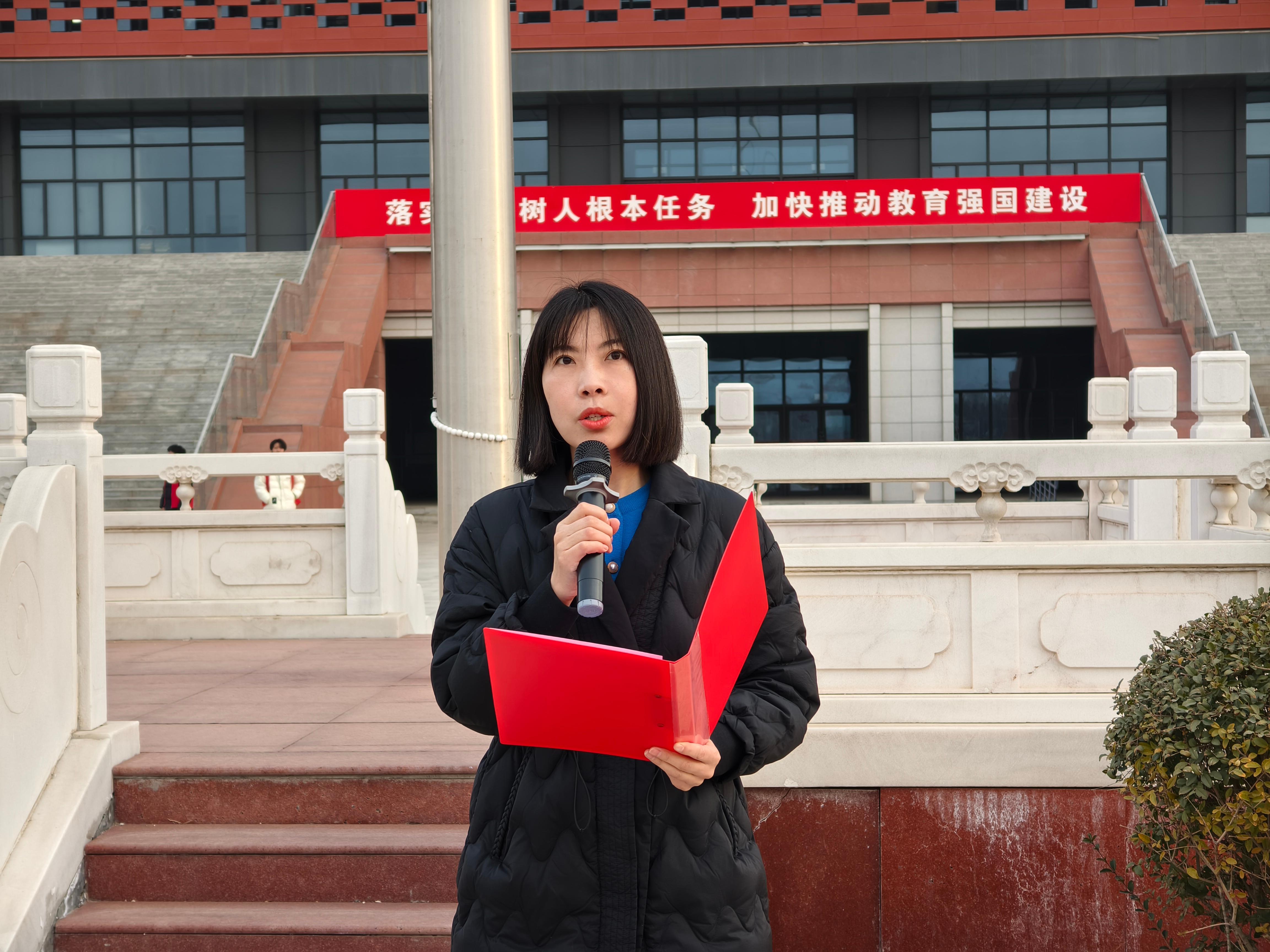为引领莘莘学子在蛇年以饱满的精神风貌投入新学期,激发大学生的爱国热忱,在校团委的指导下,2月17日,电商物流学院于图书馆南广场举行2025年春季学期开学升旗仪式,党总支书记房长显、院长王军华、党总支副书记李双双、副院长张靖及师生代表500余人参加,李双双主持升国旗仪式。