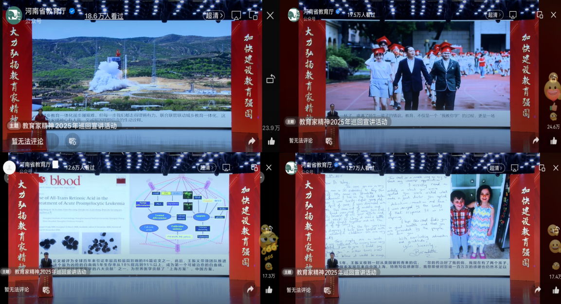 “教育家精神2025年巡回宣讲活动”直播中的5位宣讲团成员不同的教学经历,诠释着同样的教育家精神,使老师们深受感动。“共和国勋章”获得者王振义院士的同事、上海交通大学医学院附属瑞金医院副教授叶枫,浙江省杭州二中教育集团总校长、全国教书育人楷模、全国优秀教育工作者蔡小雄,新疆伊犁霍城县特殊教育学校校长许智宏等五位宣讲成员,以生动的语言、鲜活的事例,深情讲述了自己在教育教学一线爱岗敬业、无私奉献的感人事迹。