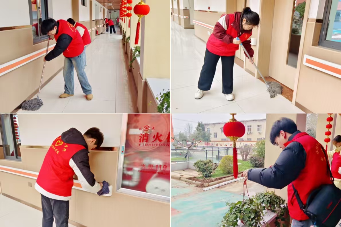 活动尾声,志愿者们分工打扫。他们手持拖把,认真拖净地面,确保走廊、房间一尘不染;用抹布仔细擦拭围栏,让其光亮如新;精心摆放花盆,营造温馨氛围。志愿者们的暖心服务,为老人们创造了整洁舒适的生活环境,以实际行动传承雷锋精神,尽显关爱担当。